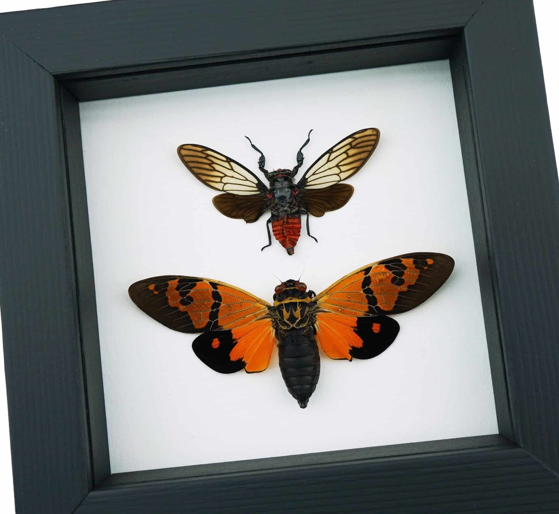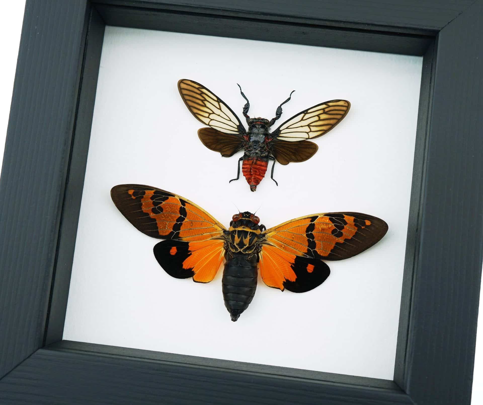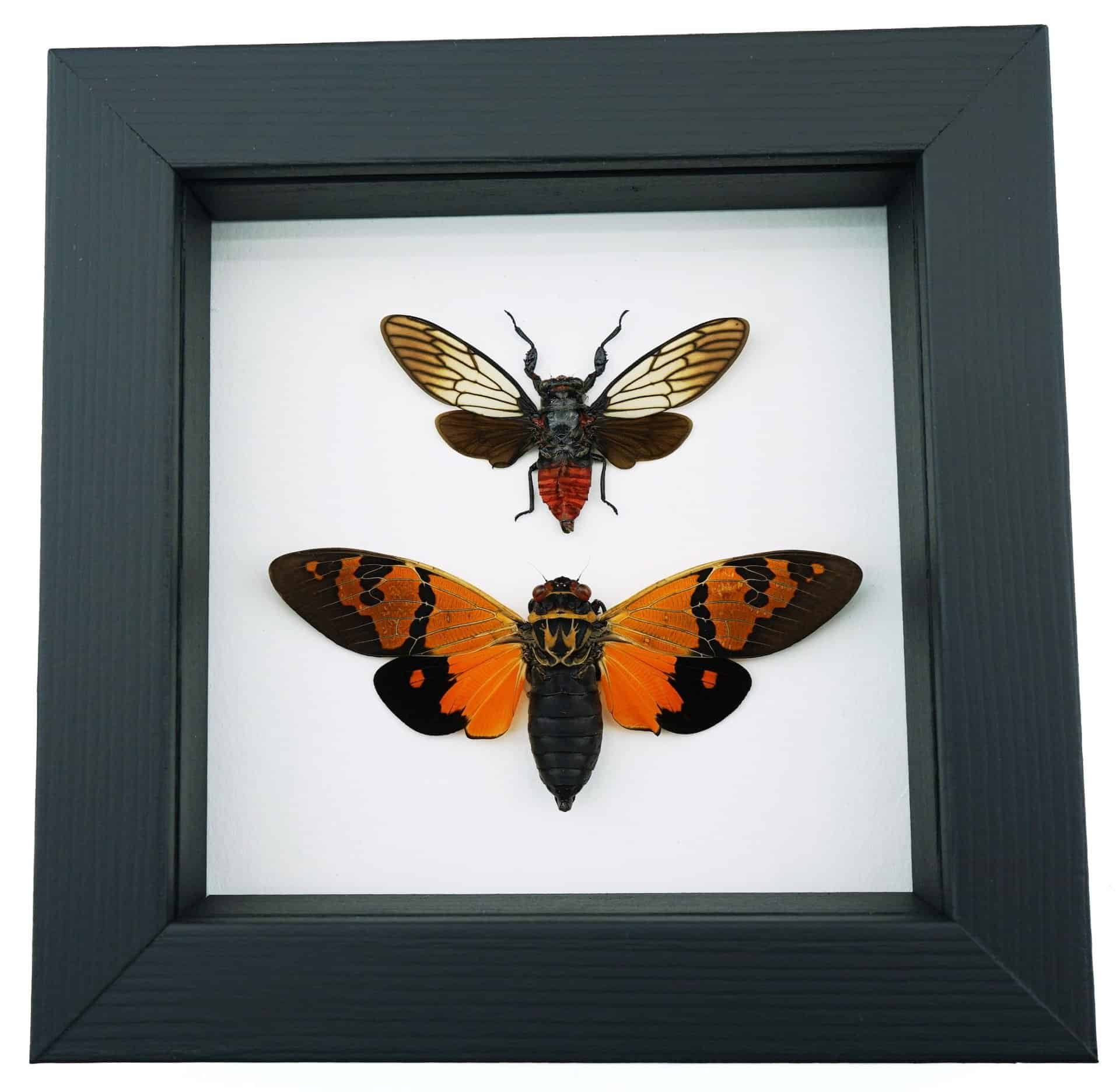 Orange Red Devil Cicada Set Framed Insect Taxidermy Classic Black Display