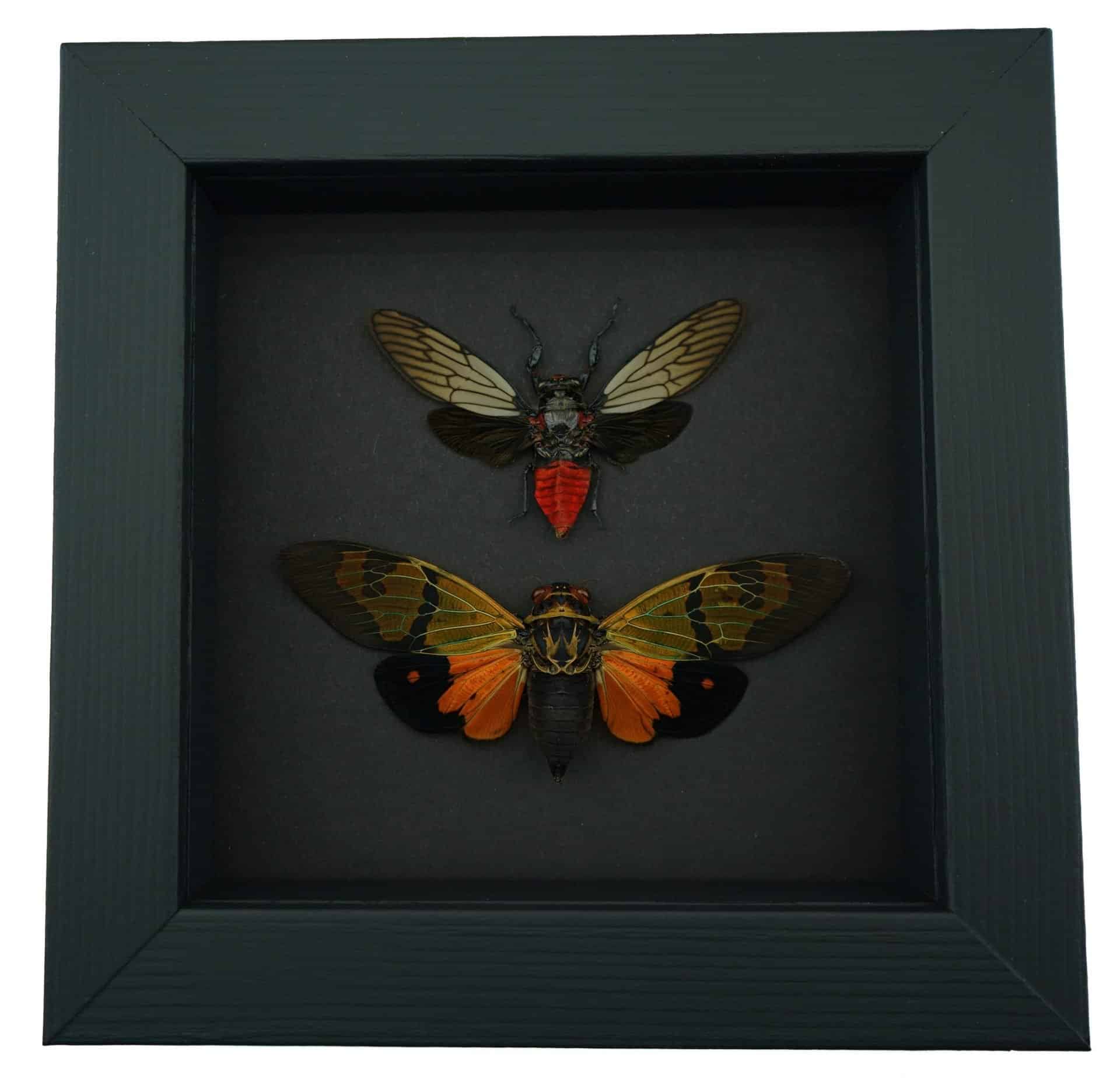 Orange Red Devil Cicada Set Framed Insect Taxidermy Moonlight Display
