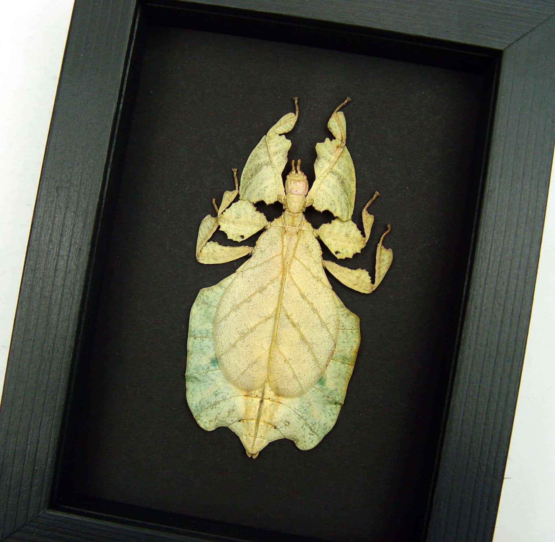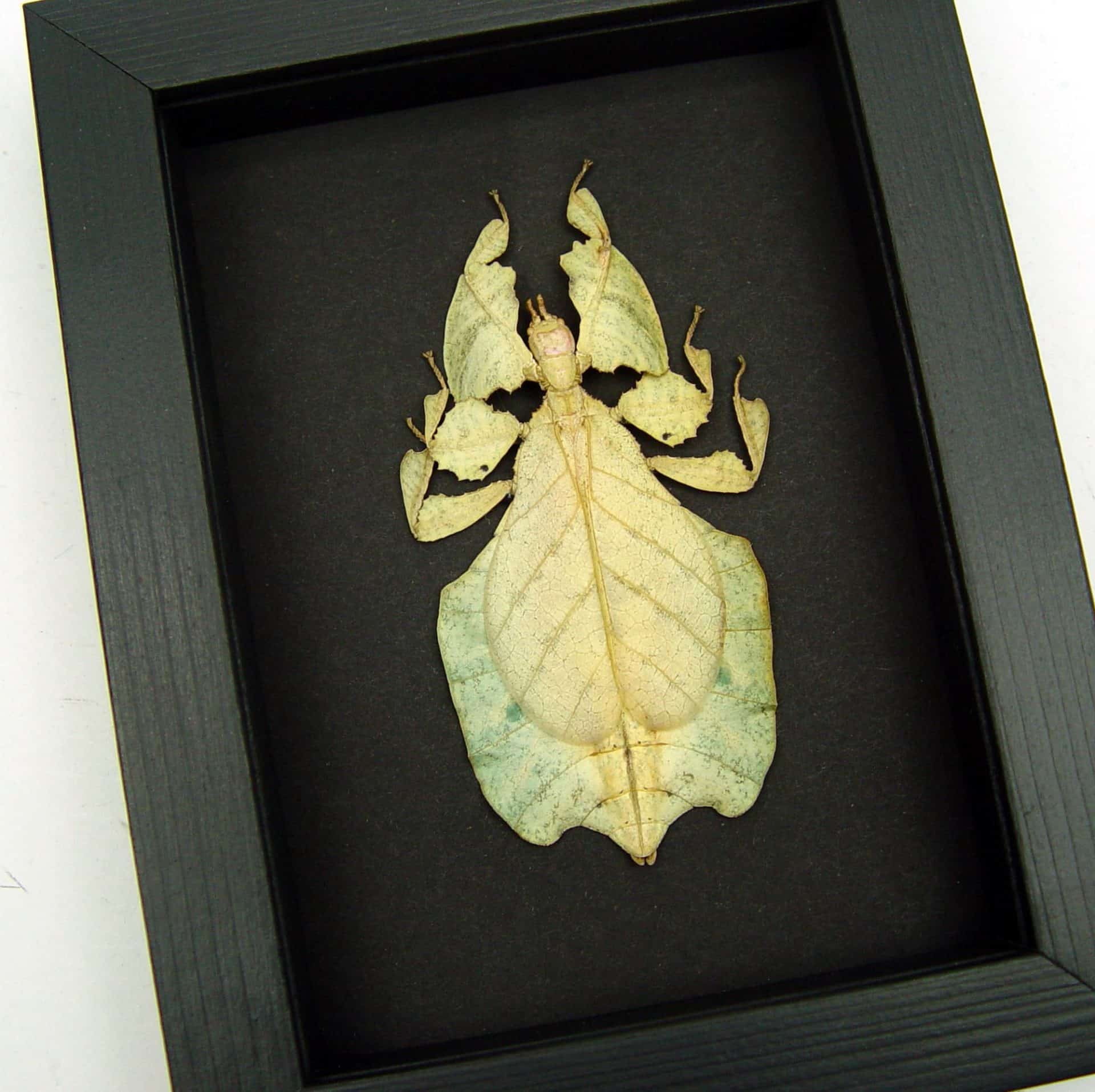 Pale Green Yellow Leaf Insect Phyllium Pulchrifolium Female Framed Taxidermy Moonlight Display