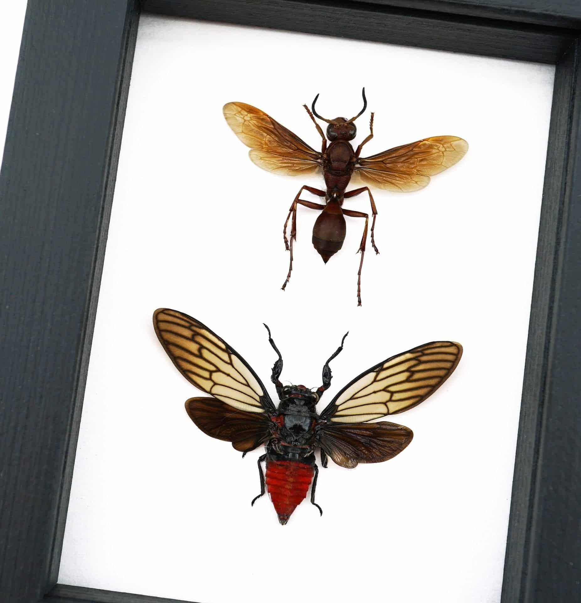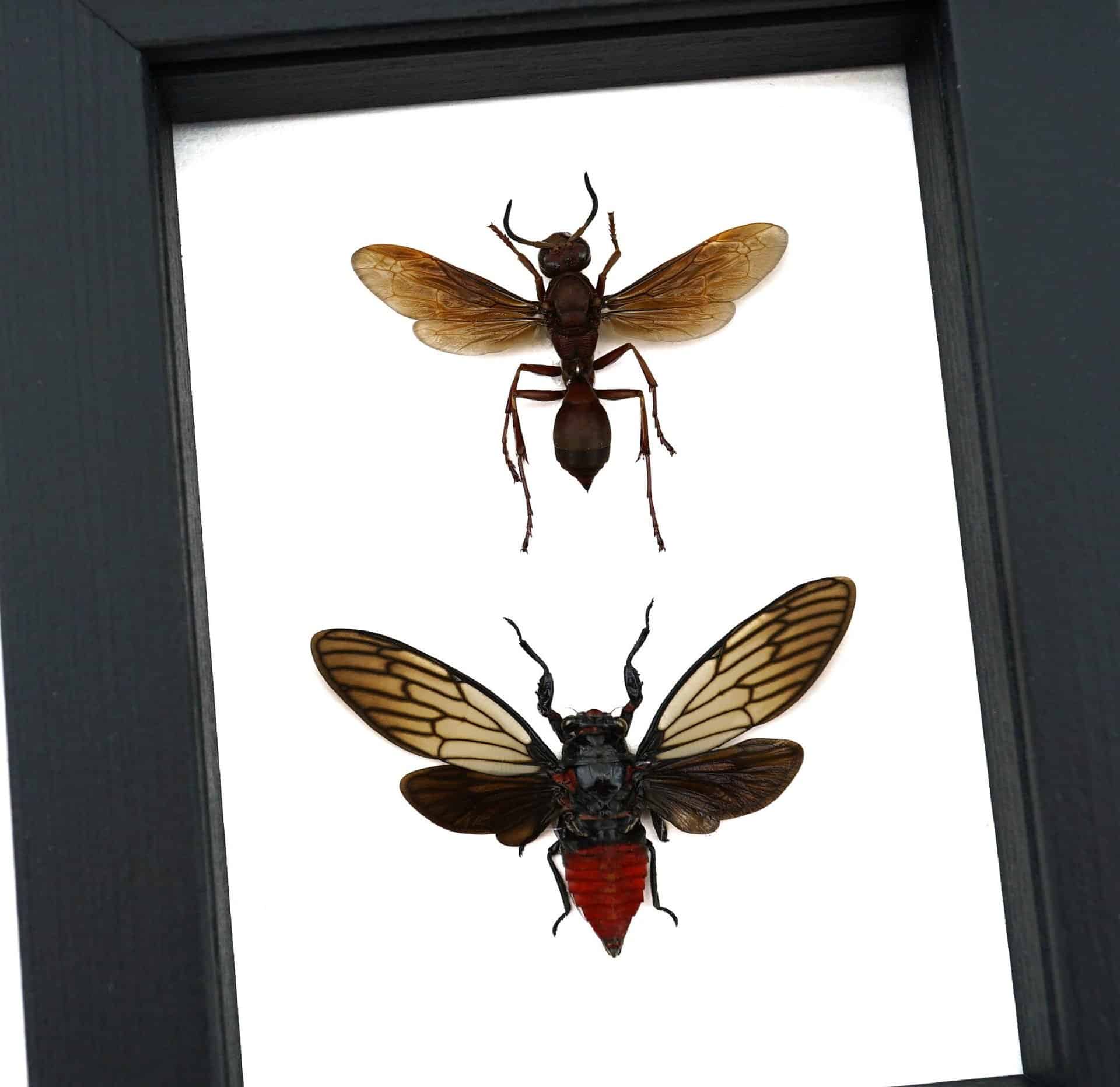 Paper Wasp Red Devil Cicada Set Framed Insect Taxidermy Classic Black Display