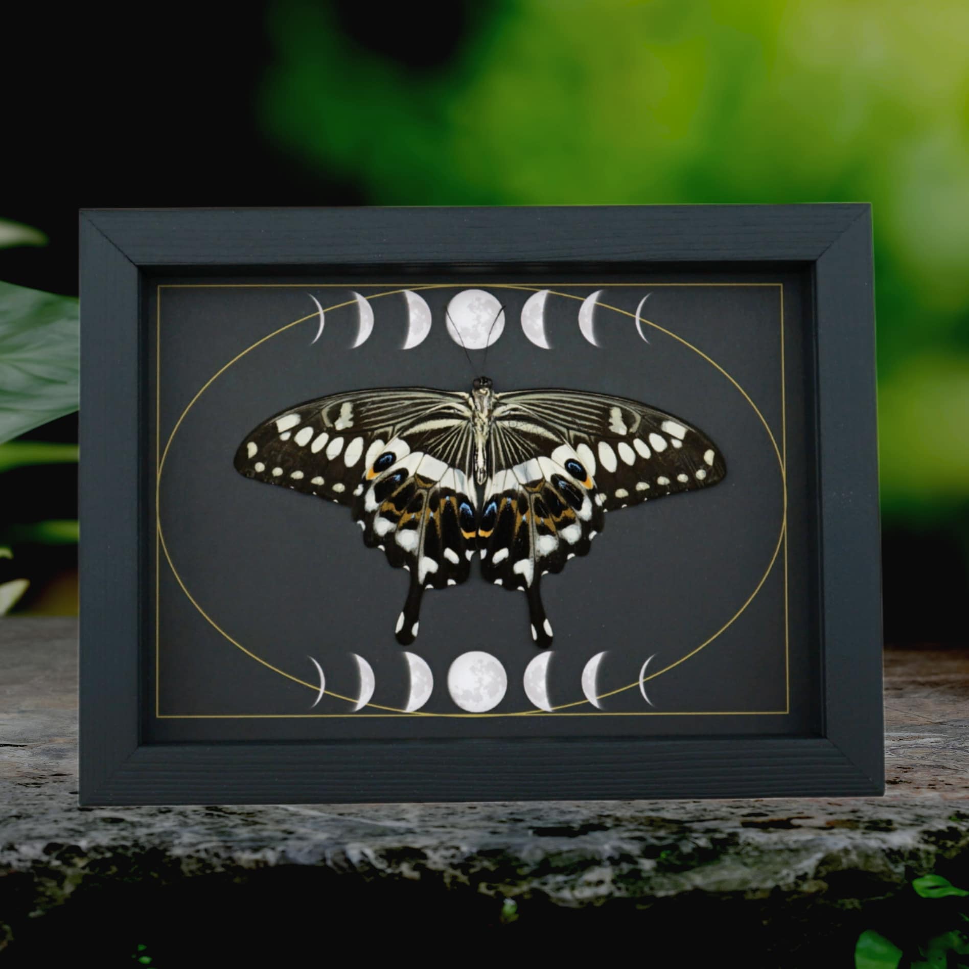Papilio lormieri Verso Resting Butterfly Moon Phases Framed Taxidermy Display
