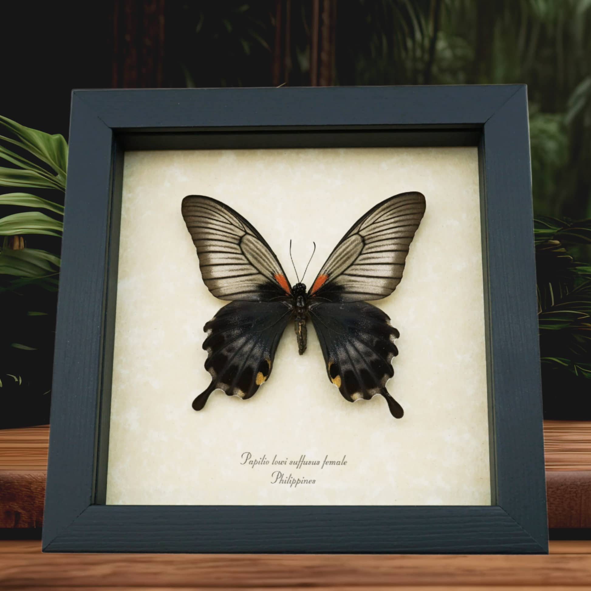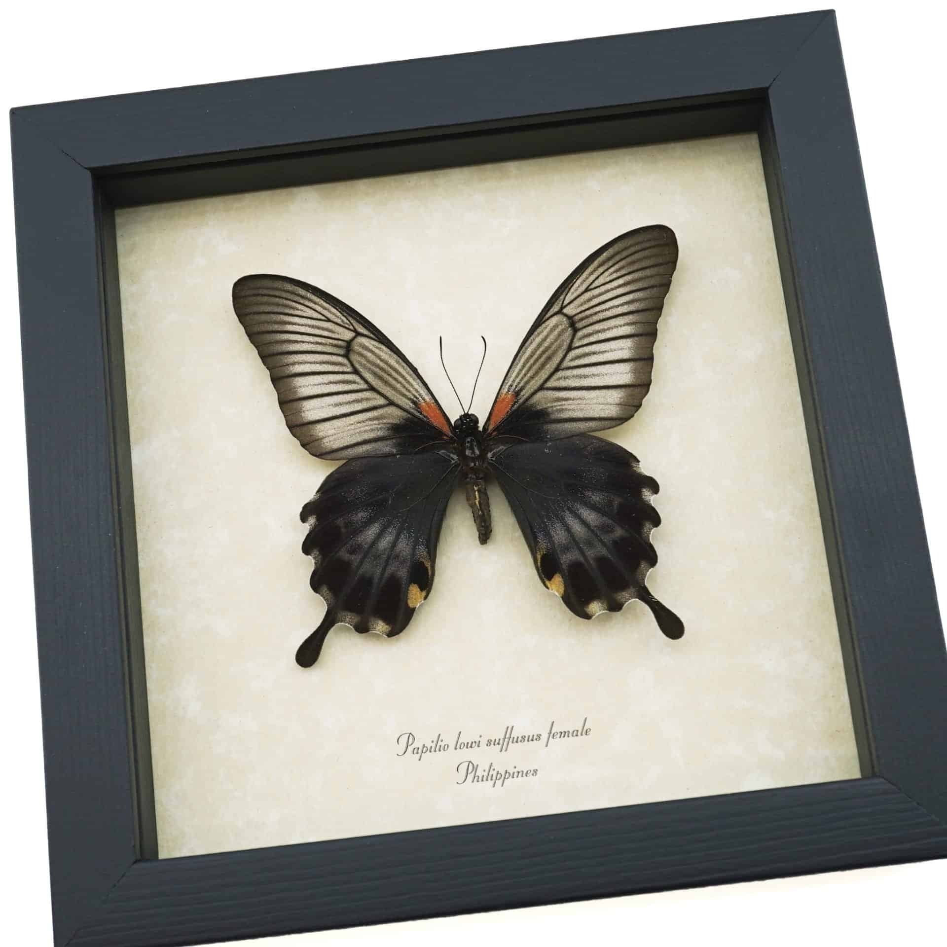 Black Gothic Butterfly Papilio Lowi suffusus Female Framed Taxidermy Display