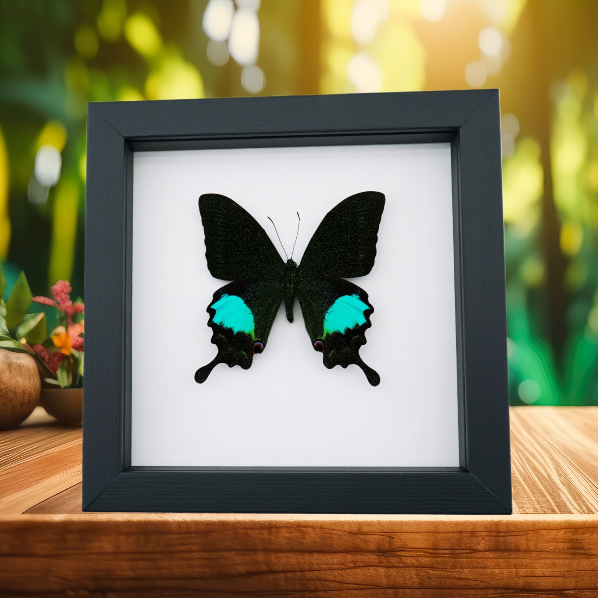 Papilio paris Peacock Swallowtail Green Butterfly Classic Black Display Framed Taxidermy