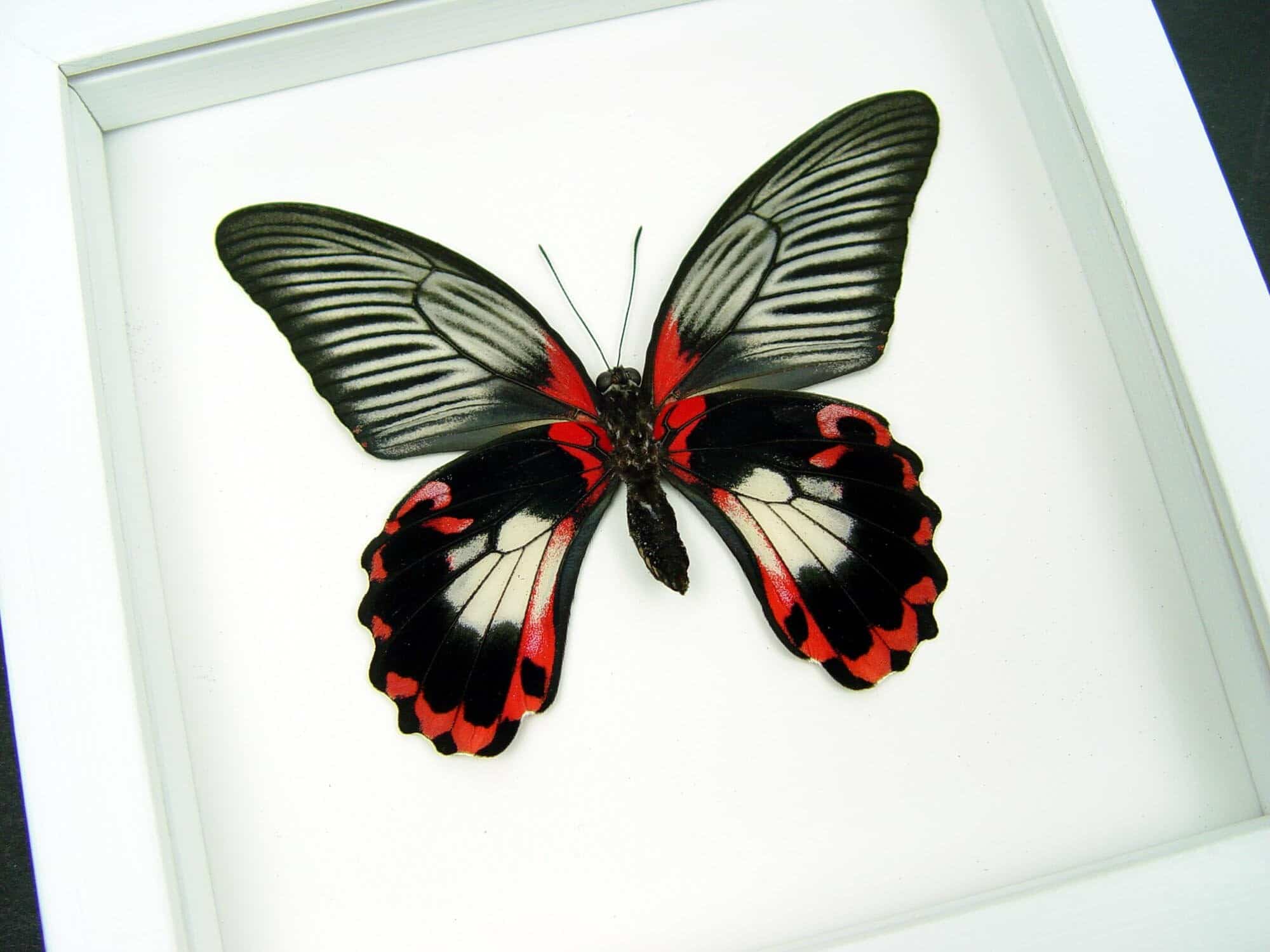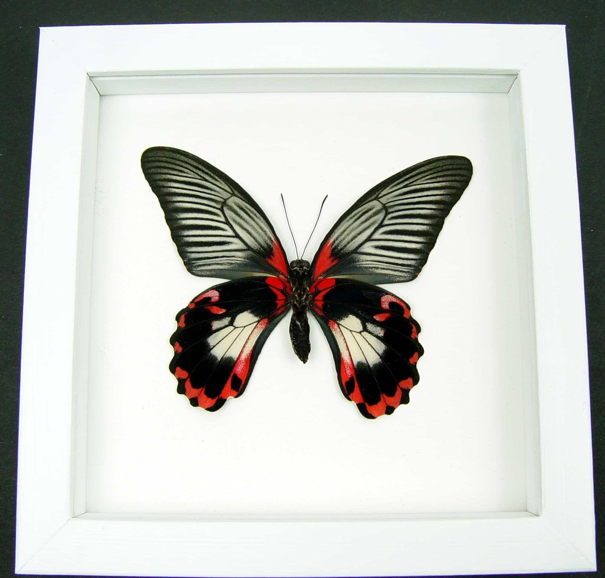 Papilio rumanzovia female verso Scarlet Mormon Butterfly Vibrant White Display Framed Taxidermy