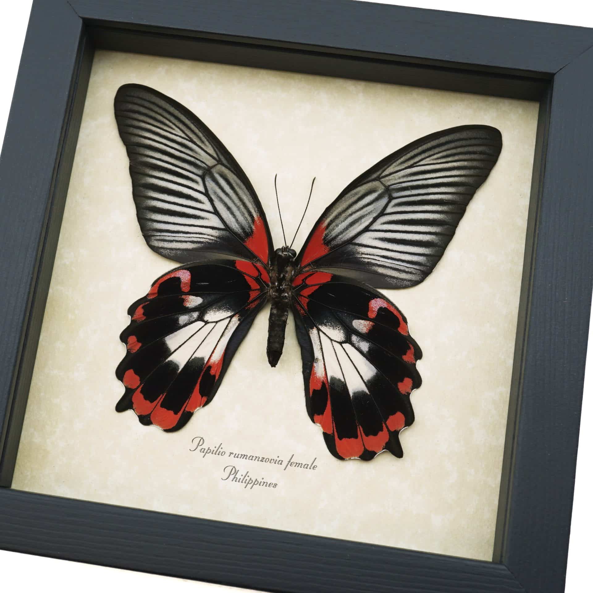 Papilio rumanzovia female verso Scarlet Mormon Framed Butterfly Taxidermy Display