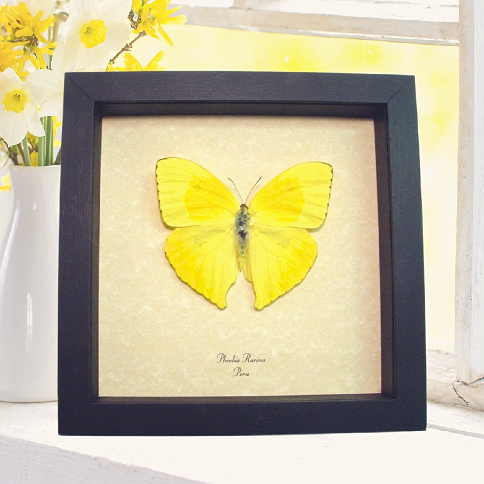 Real Framed Sulpher Yellow Butterfly Phoebis rurina Taxidermy Display
