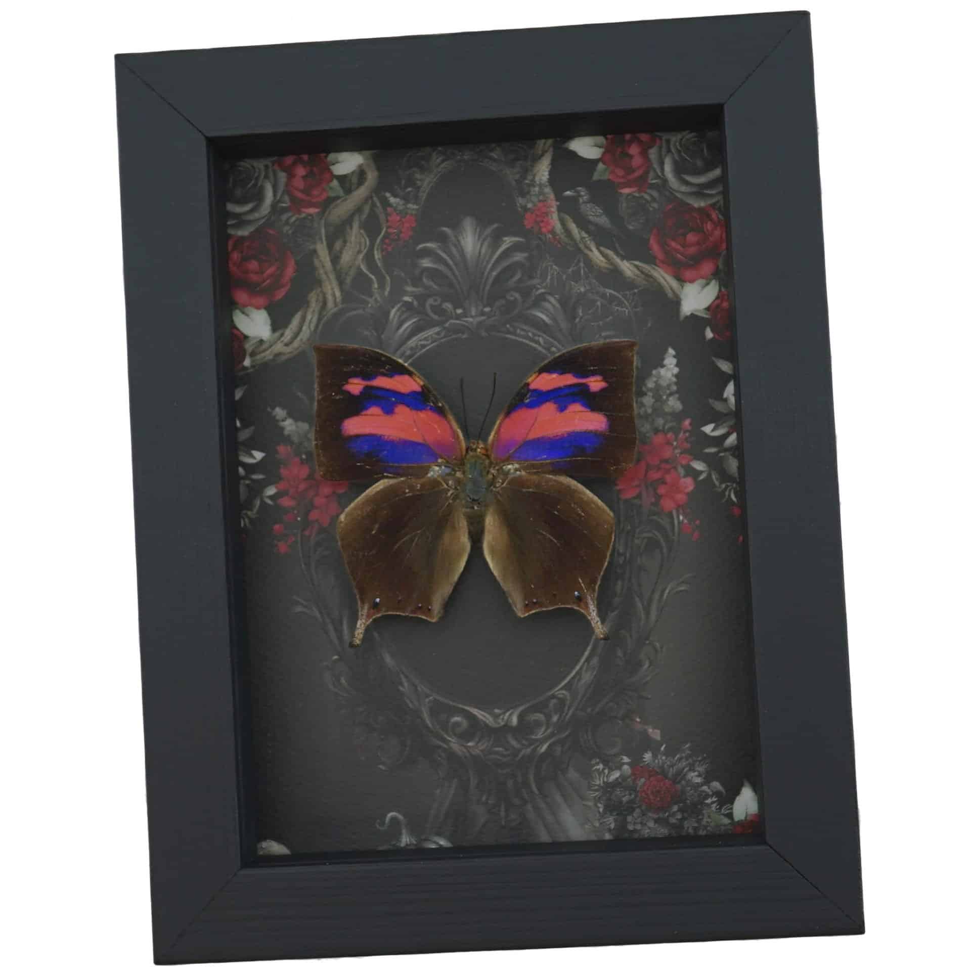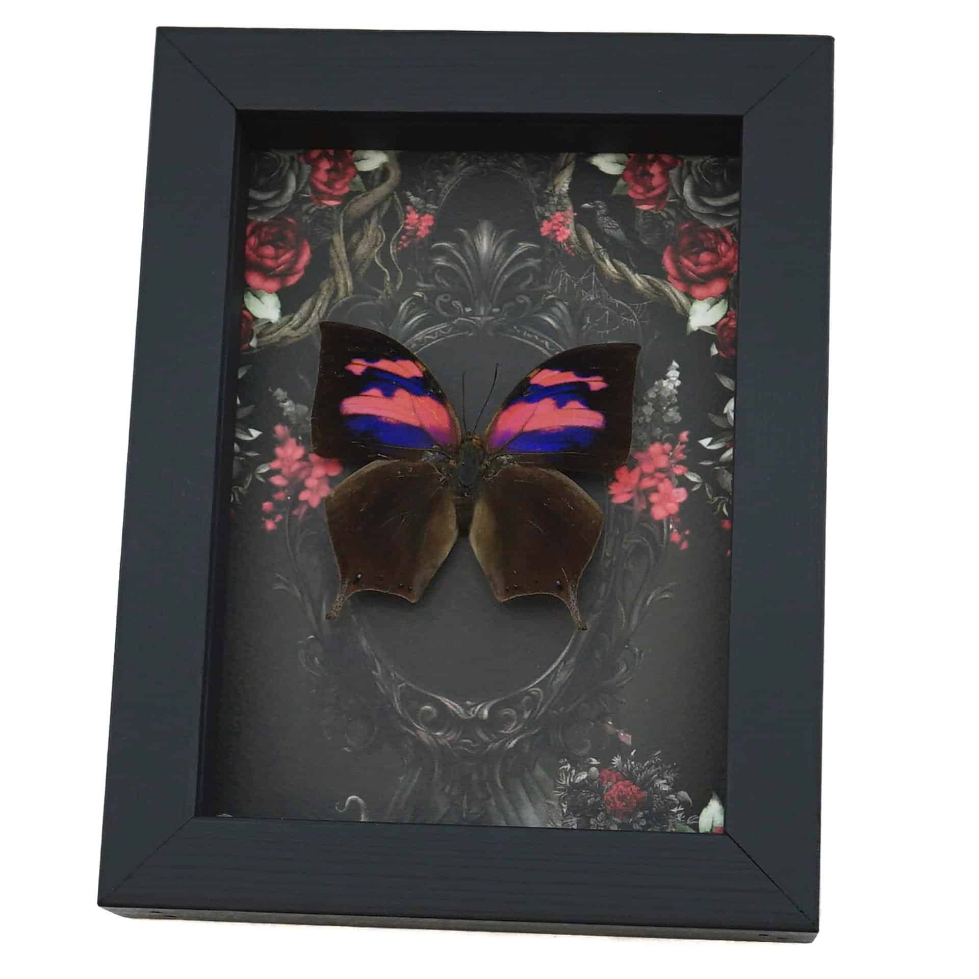 Pink Purple Butterfly Gothic Black Roses Real Anaea nessus Pink Framed Butterfly
