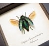 Description: Shiney Jewel Beetle From Madagascar with metallic green colors in a flying position.