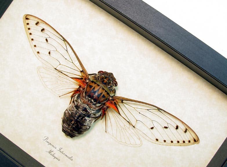 Pomponia intermedia Giant Clear Winged Cicada Framed Taxidermy Display