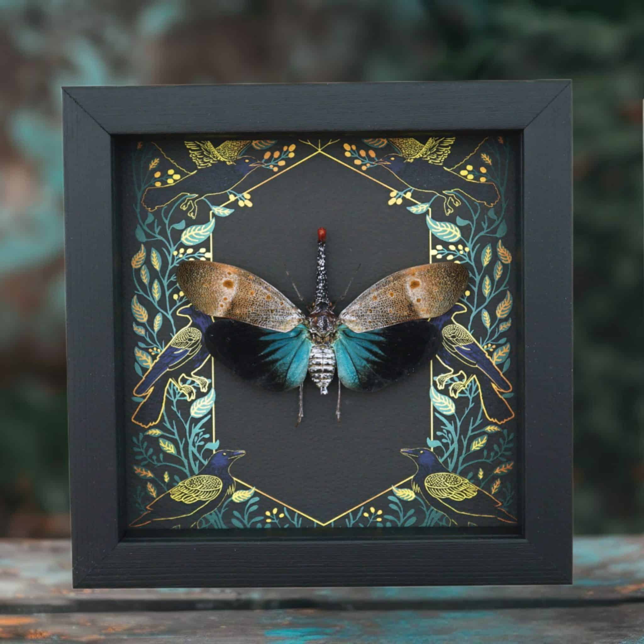 Pyrops pyrorhyncha Blue Lanternfly Framed Insect Gothic Ravens Taxidermy Display