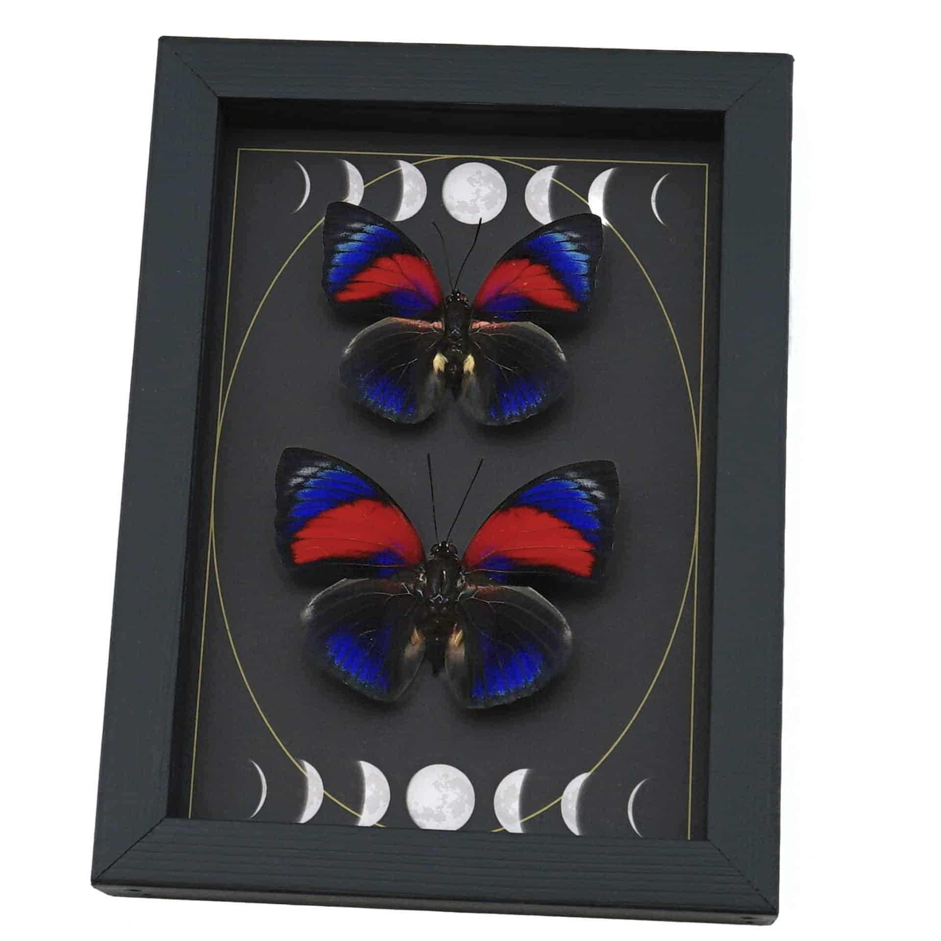 Rare Electric Blue Agrias Hybrid Butterfly Set Gothic Moon Phases Framed Taxidermy
