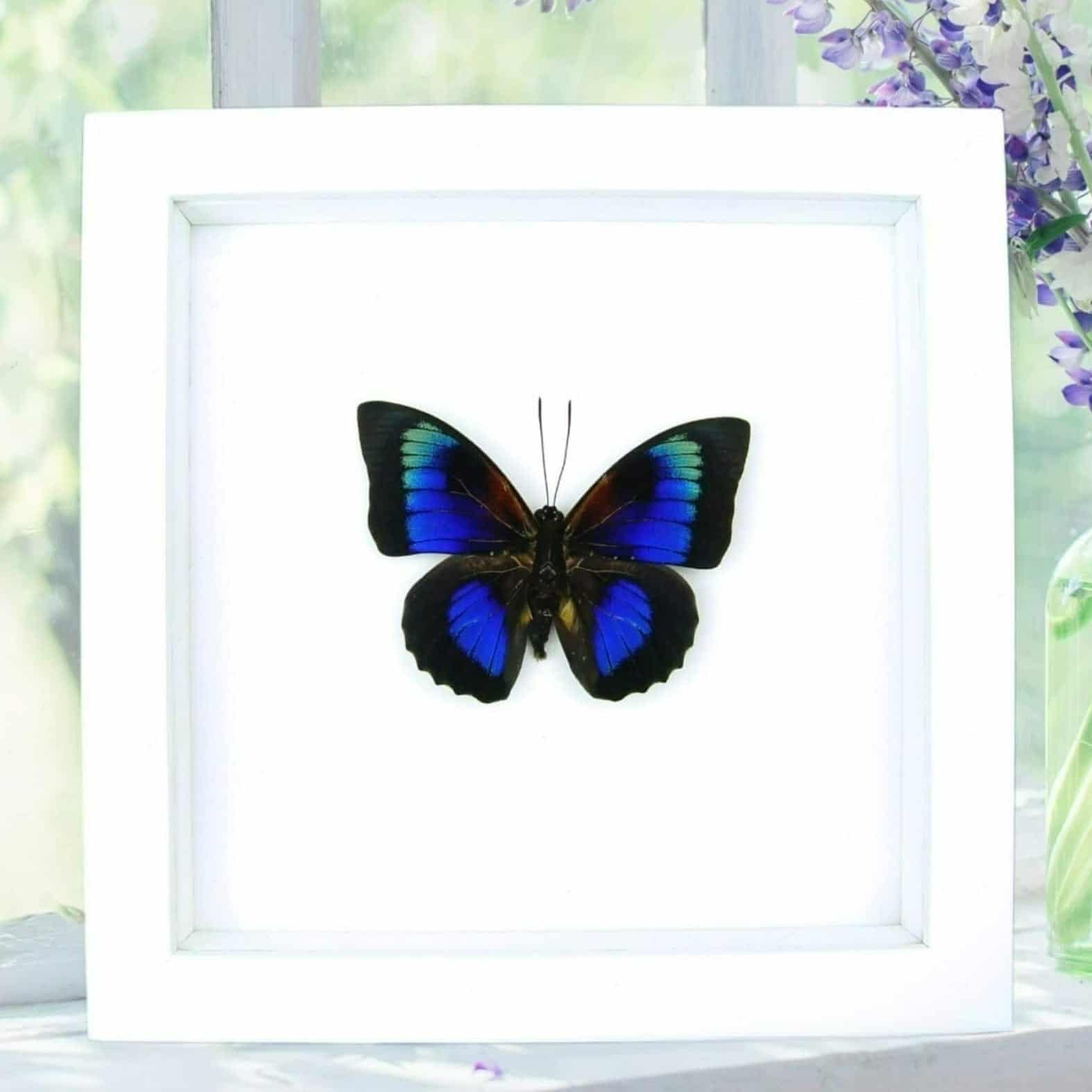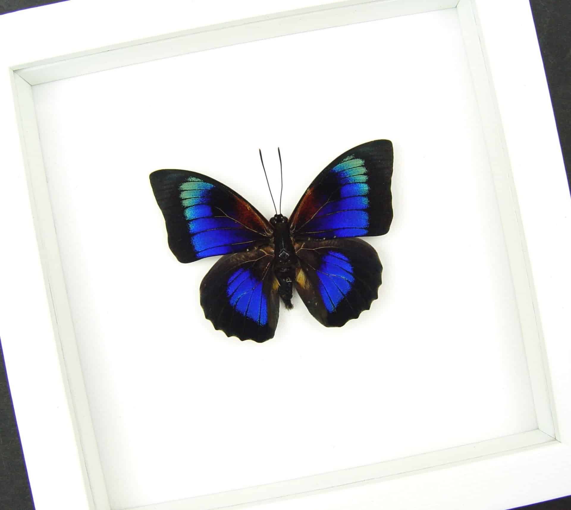 Rare Electric Blue Hybrid Butterfly Framed Vibrant White Display