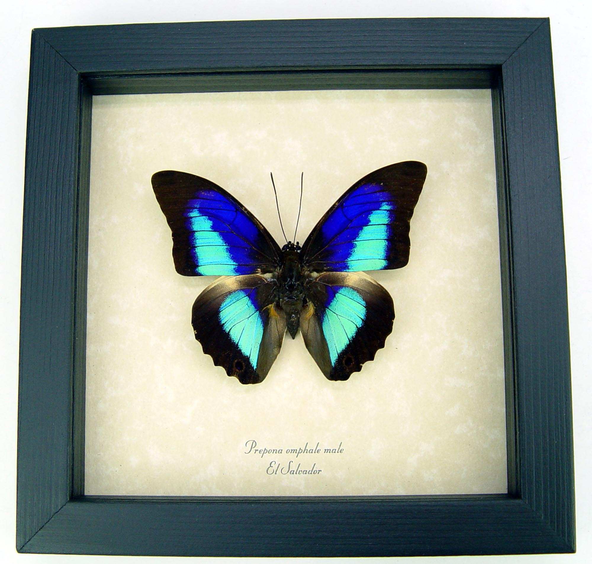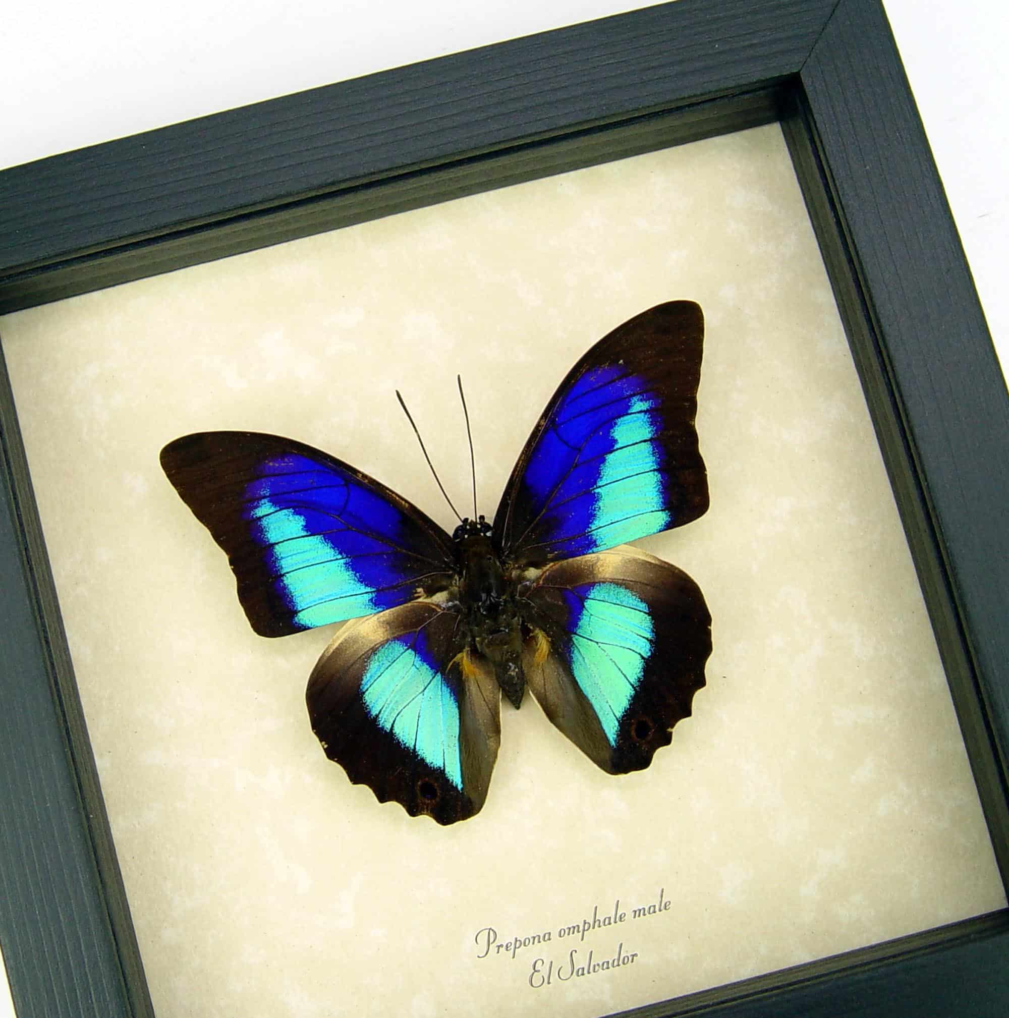 Rare Electric Blue Purple Butterfly Prepona omphale Framed Taxidermy Display