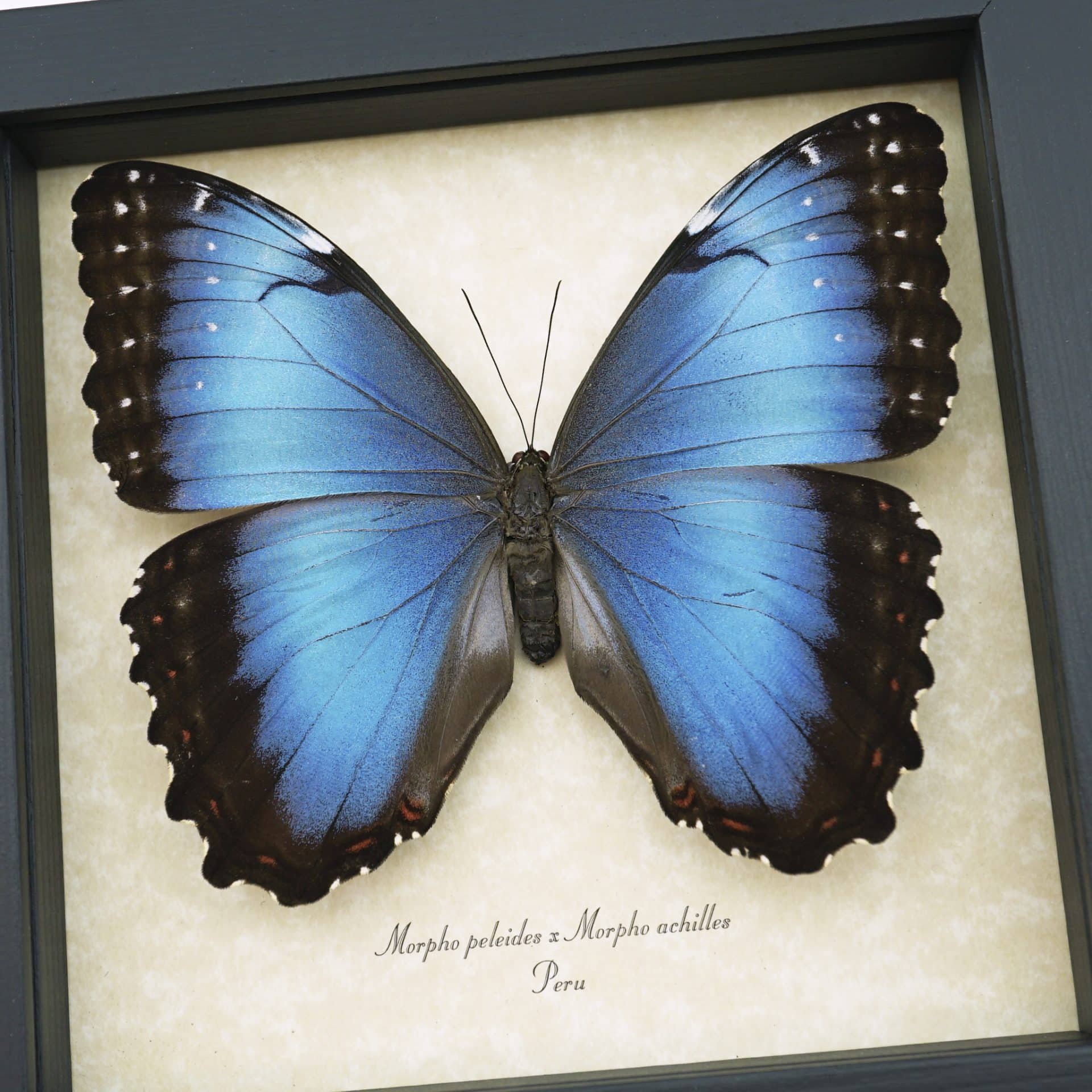 Rare Hybrid Blue Morpho Butterfly Morpho peleides Morpho achilles Female Framed Taxidermy Display