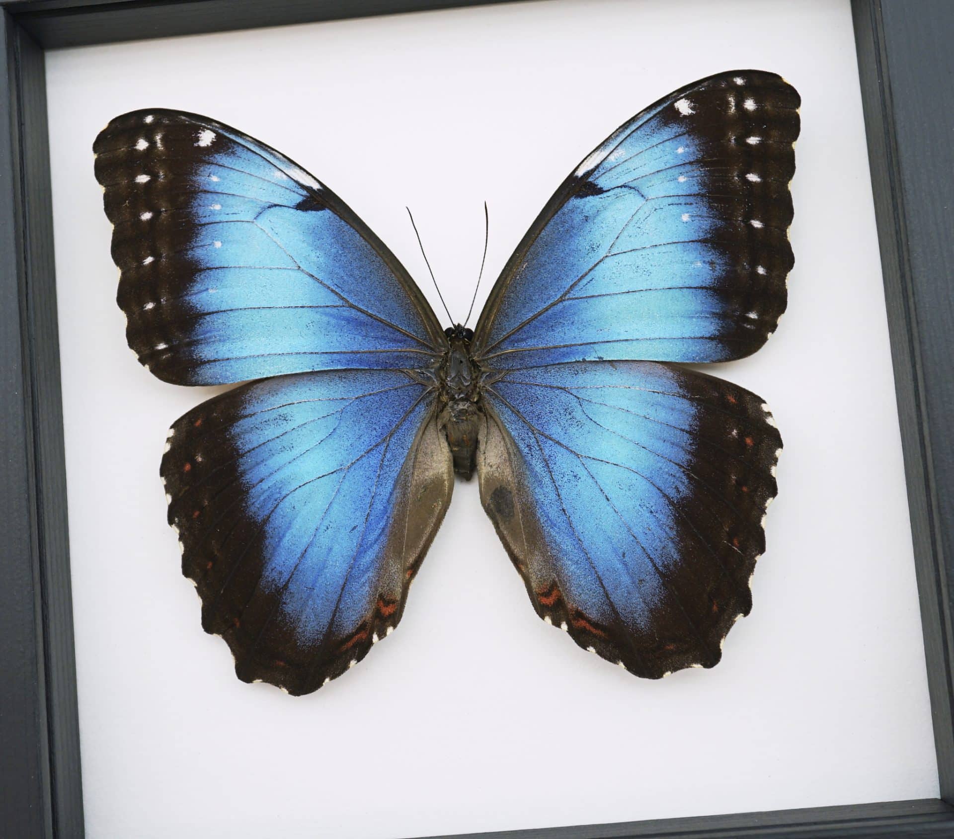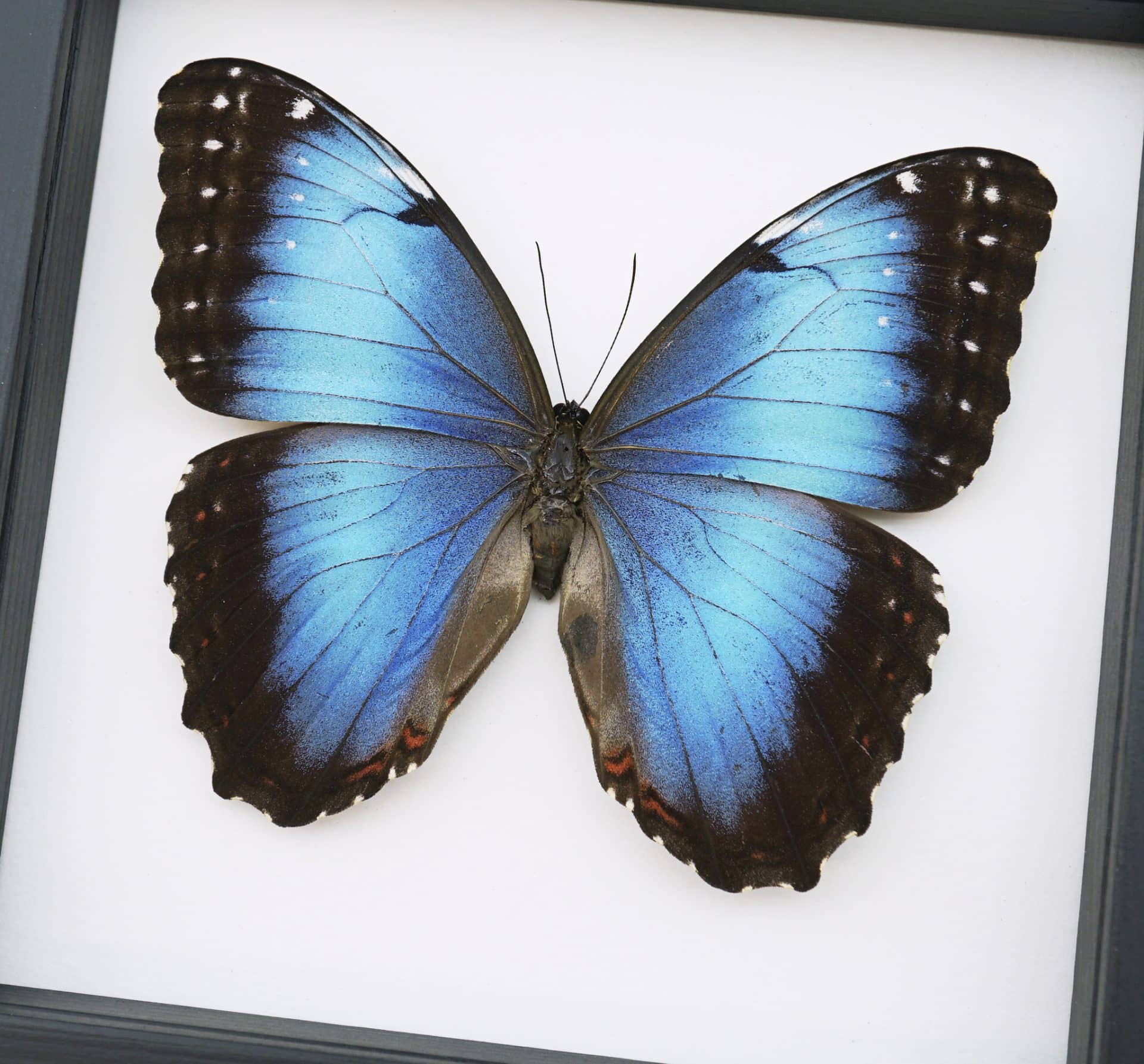 Rare Hybrid Blue Morpho Butterfly Female Framed Taxidermy Classic Black Display