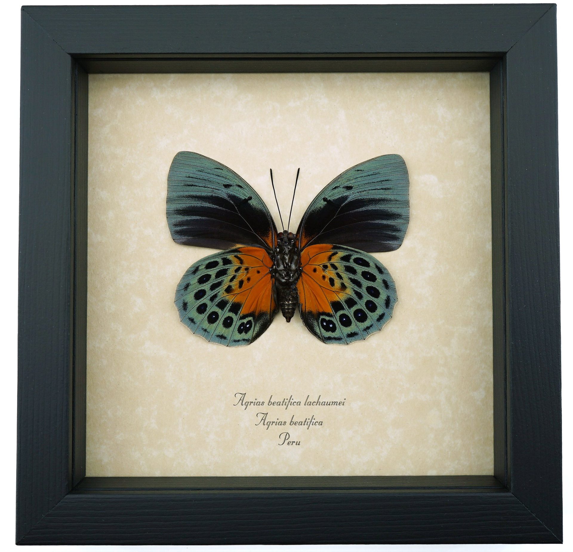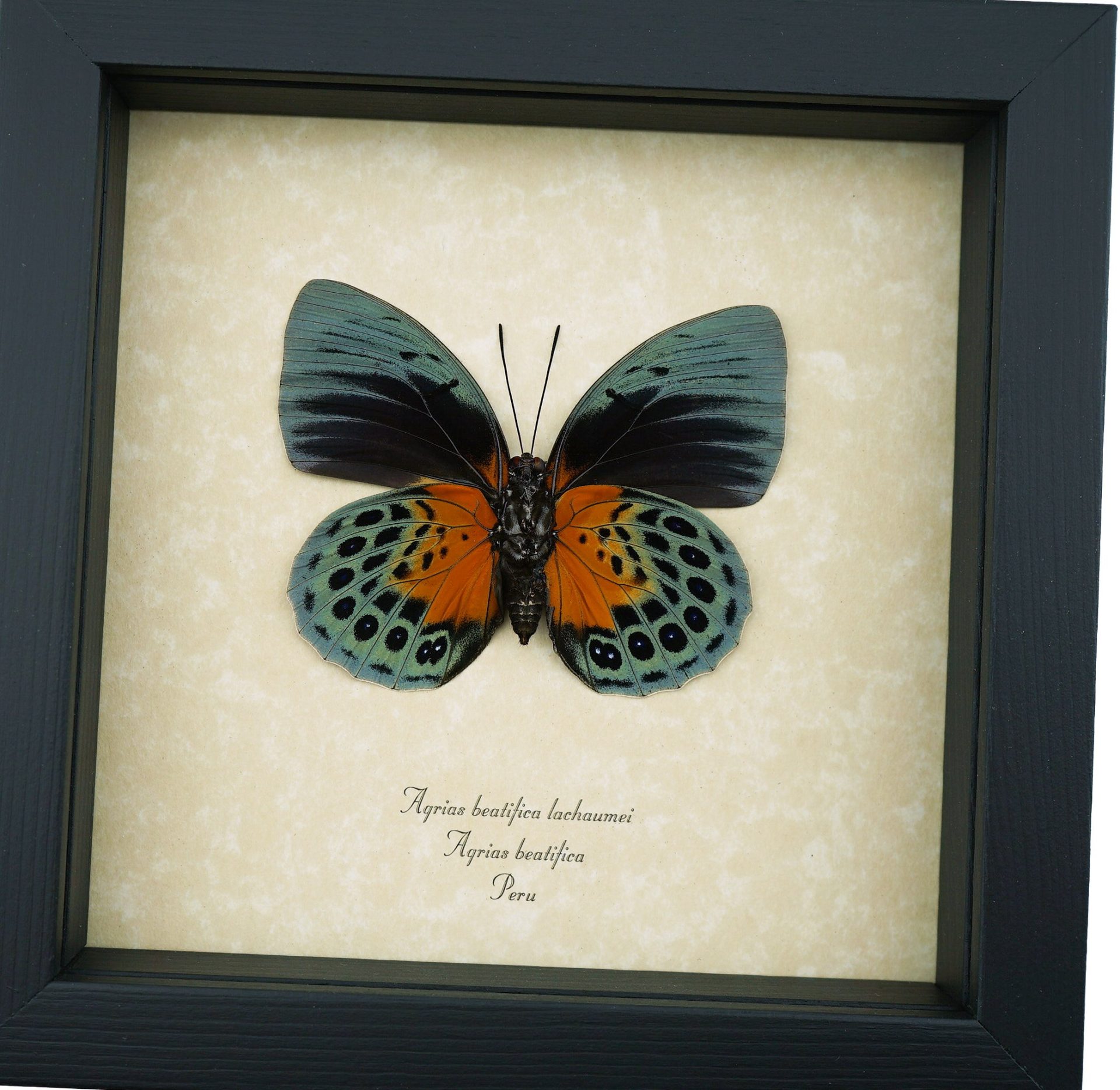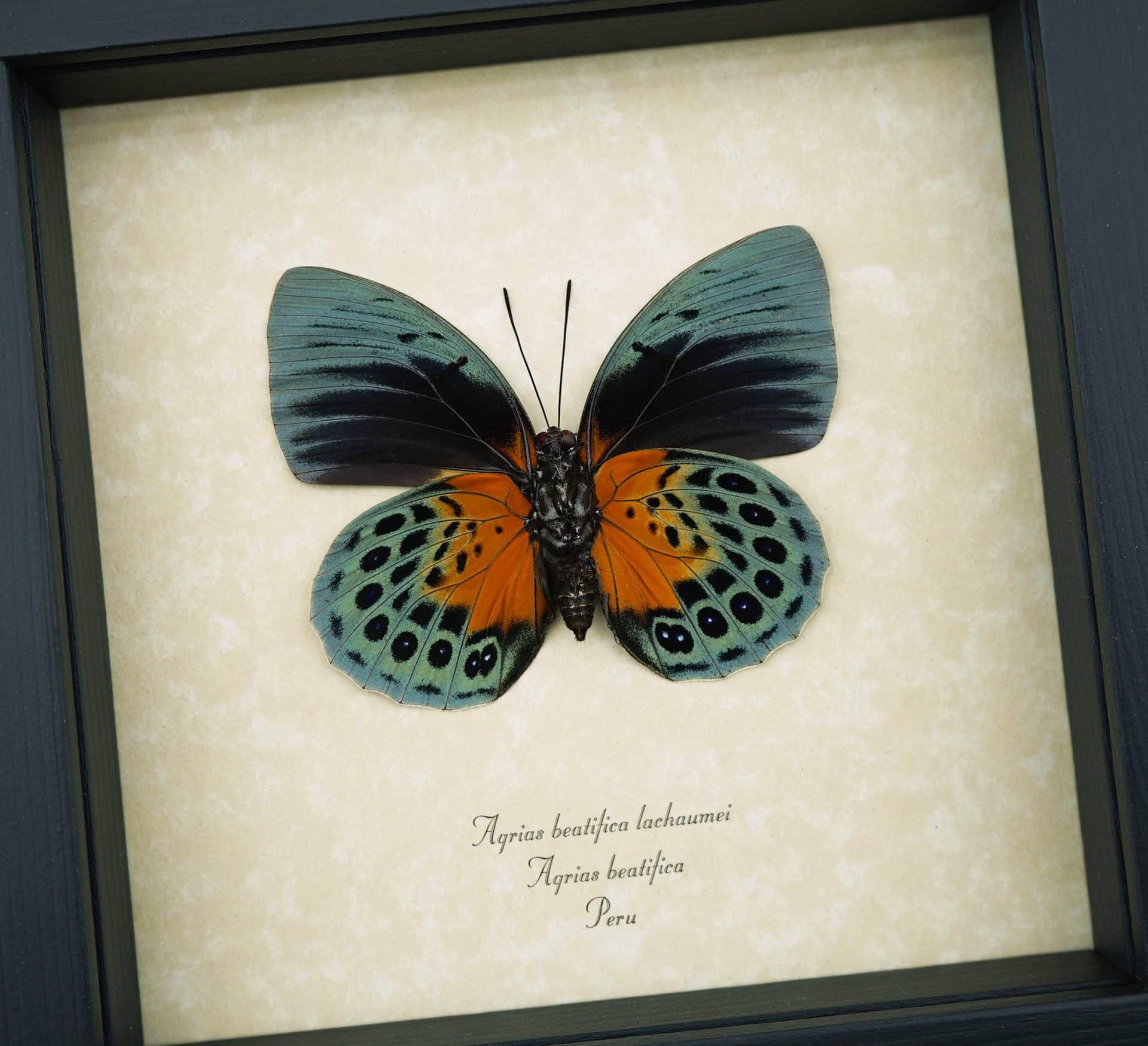 Rare Orange Green Hybrid Butterfly Agrias beatifica Agrias lachaumei Female verso Framed Taxidermy Display