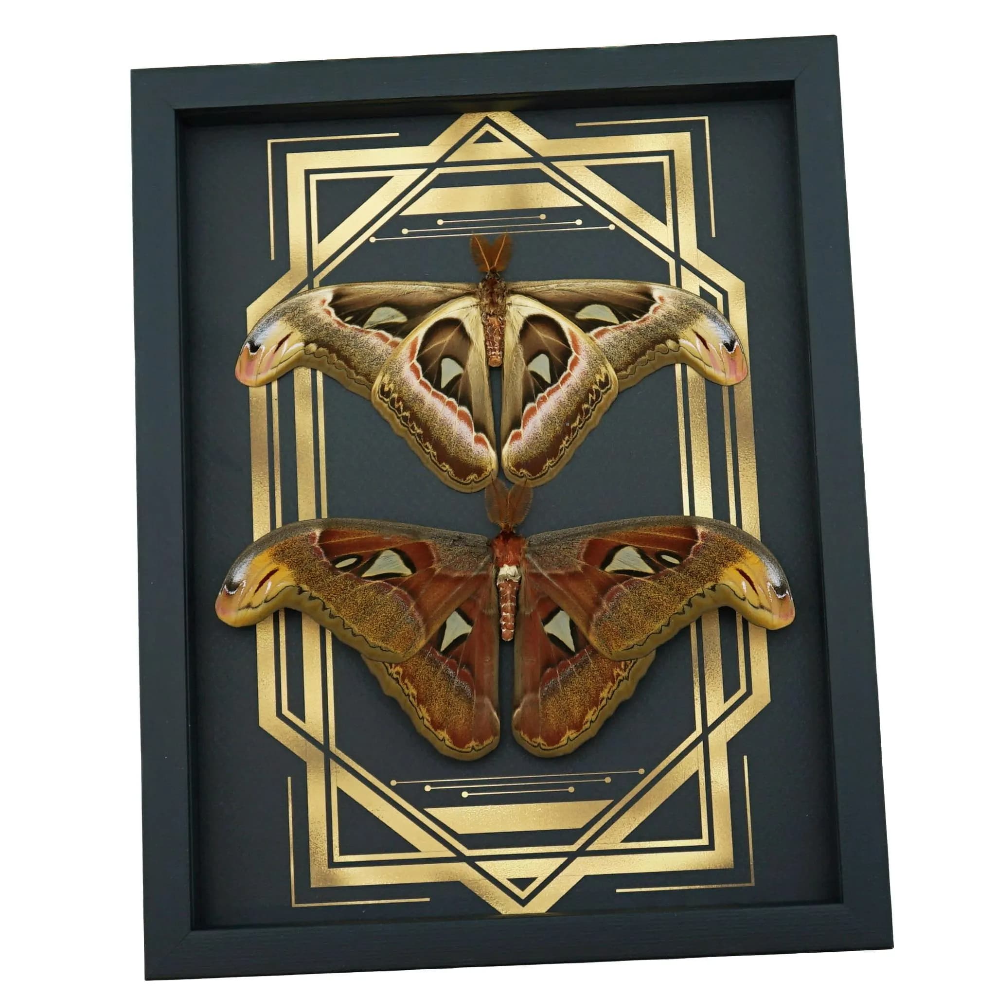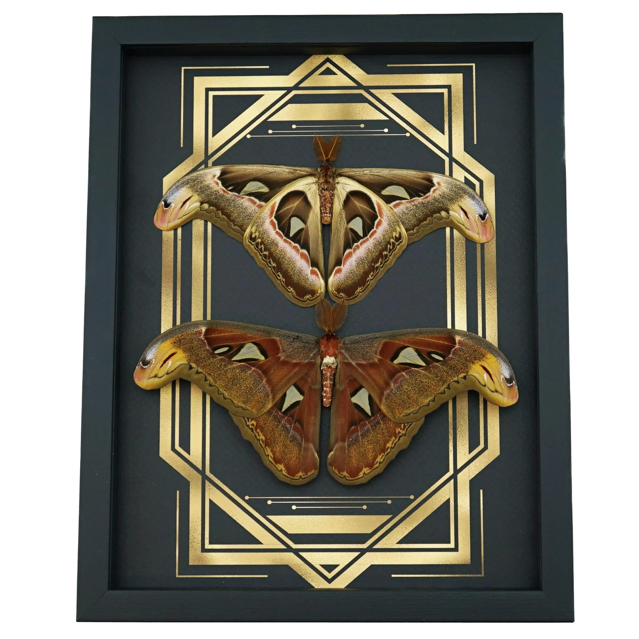 Real Atlas Moth Pair Art Deco Border Attacus Atlas Moth Set Framed Taxidermy Display