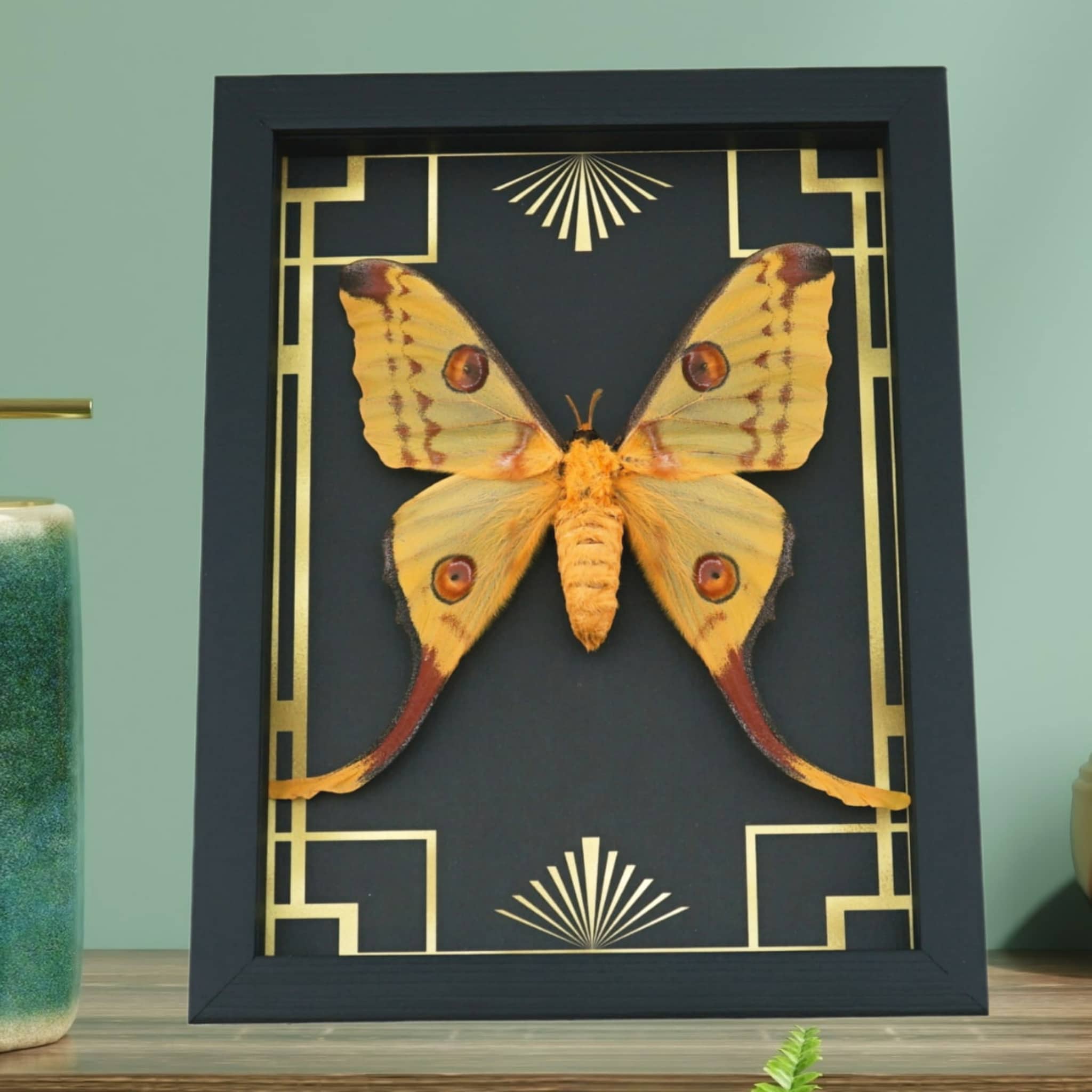 Real Comet Moth Argema mittrei Female Art Deco Framed Taxidermy Display