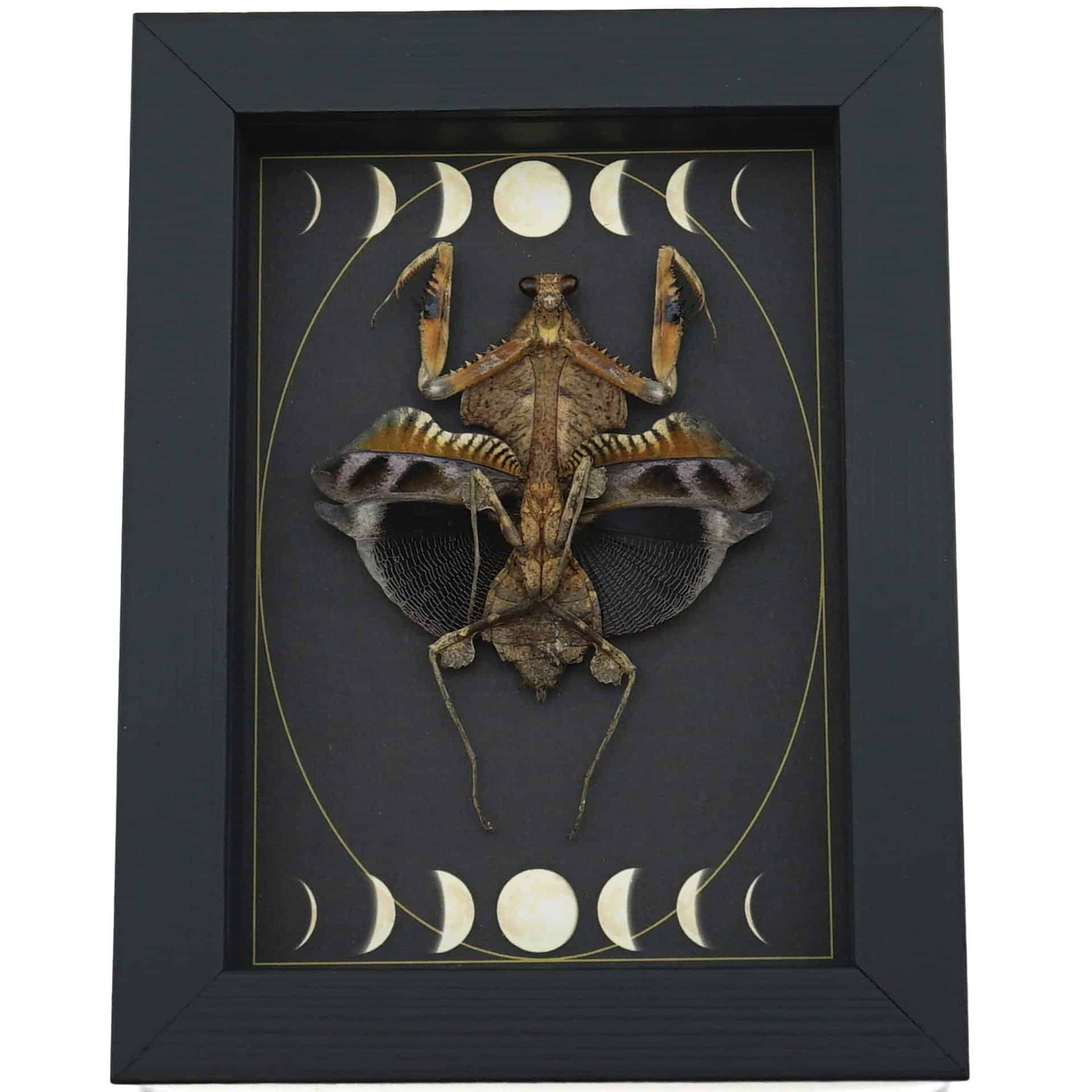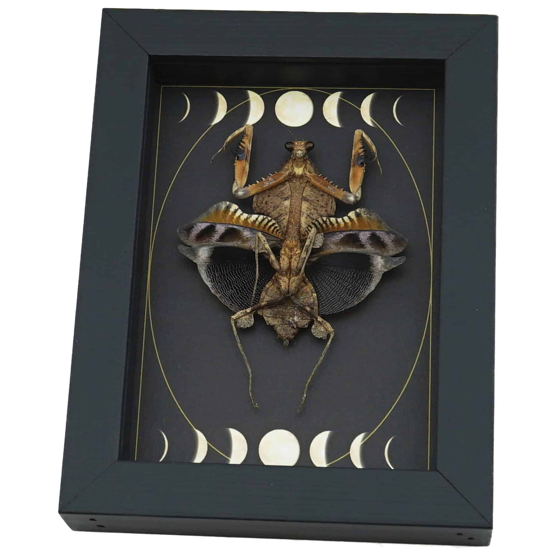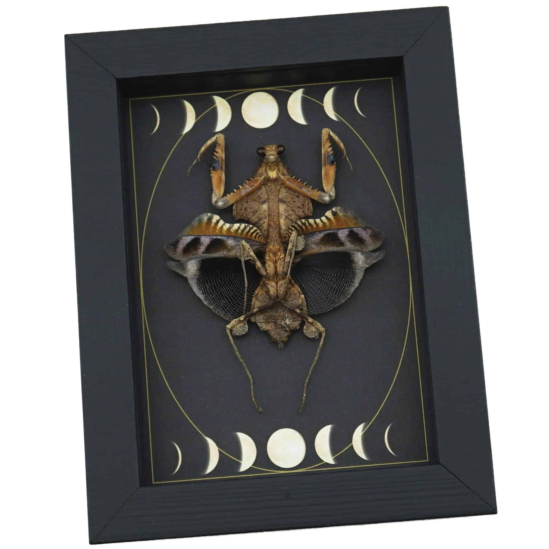 Real Dead Leaf Praying Mantis Gothic Moon Phases Framed Deroplatys lobata Insect Taxidermy