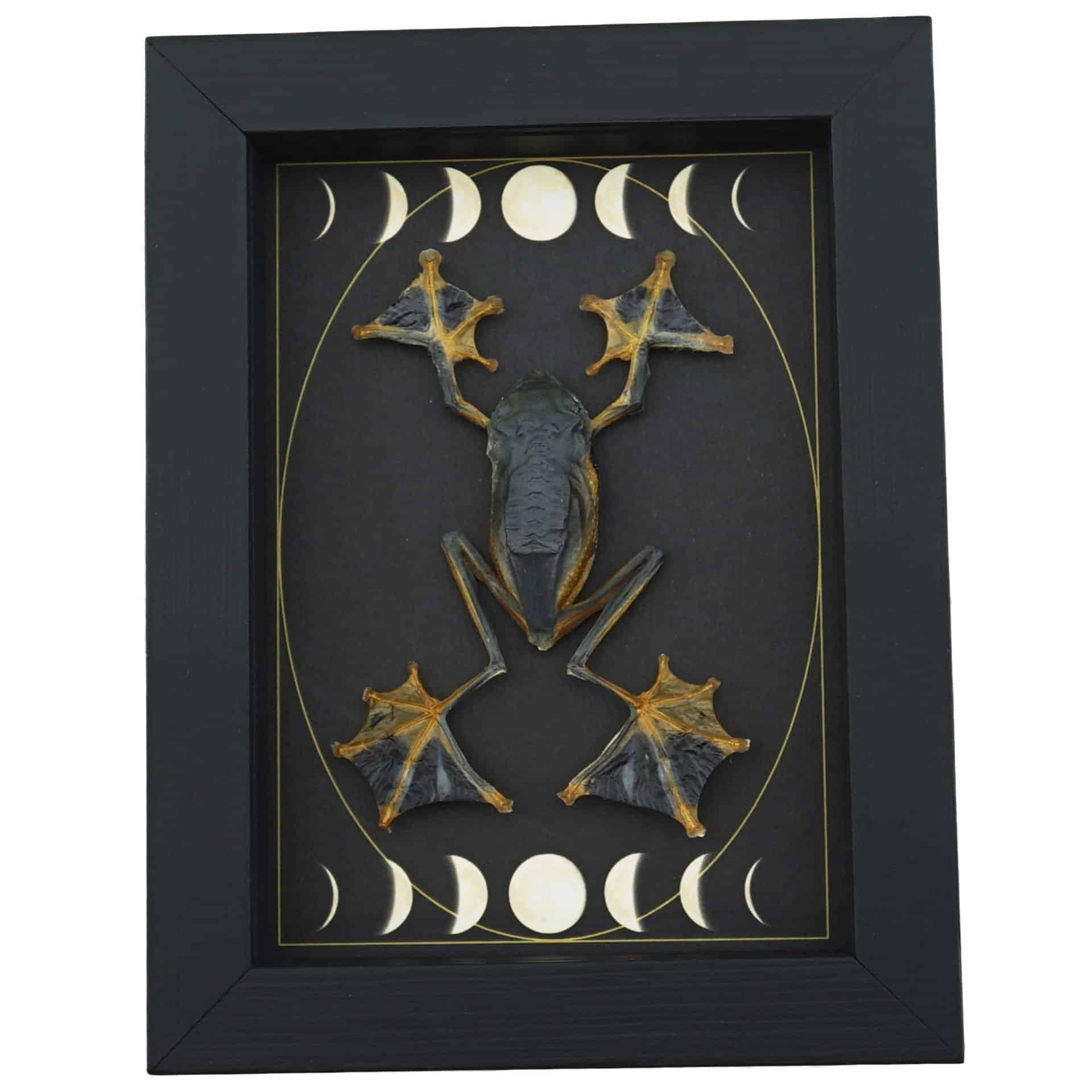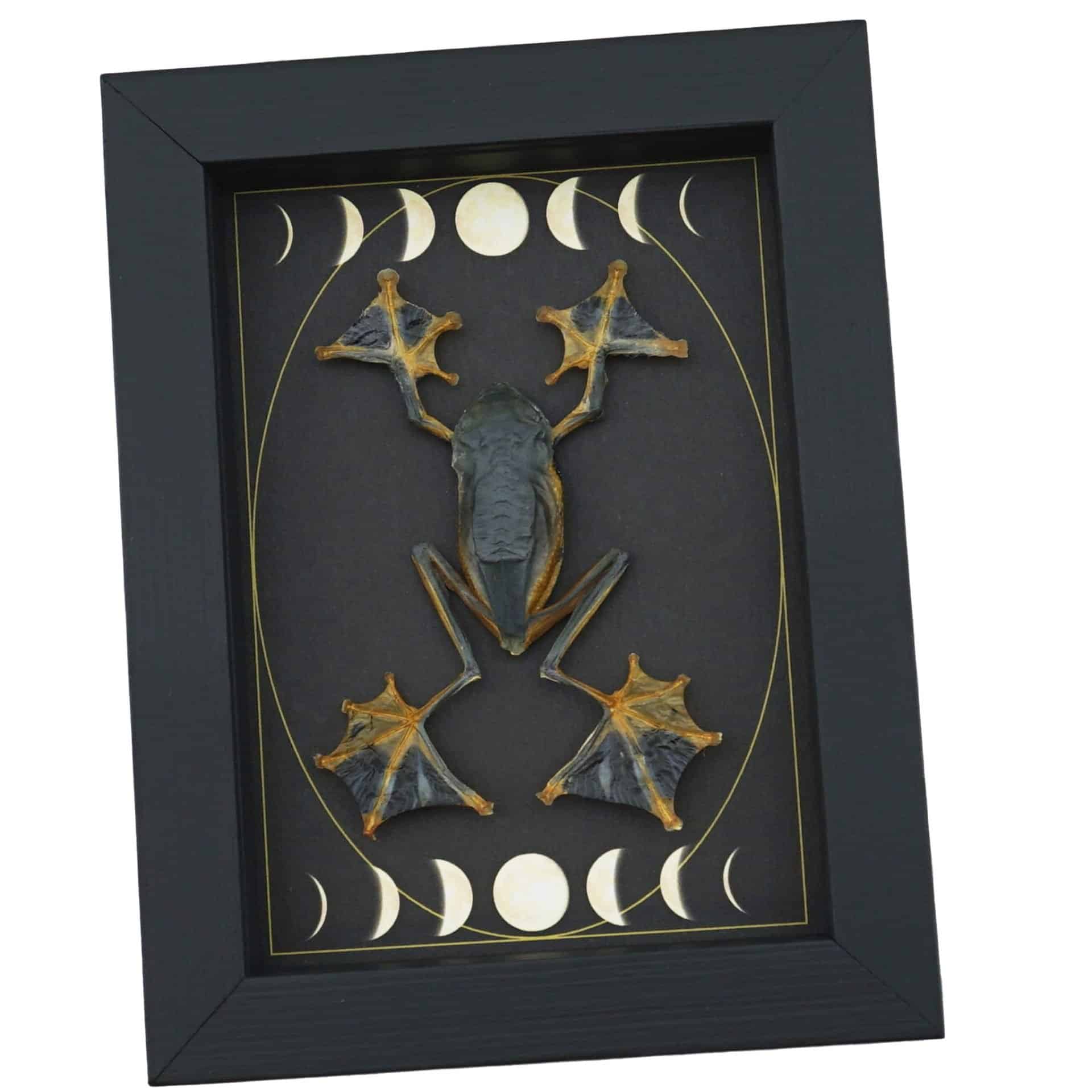 Real Flying Parachute Tree Frog Moon Phases Rhacophorus reinwardtii Framed Taxidermy
