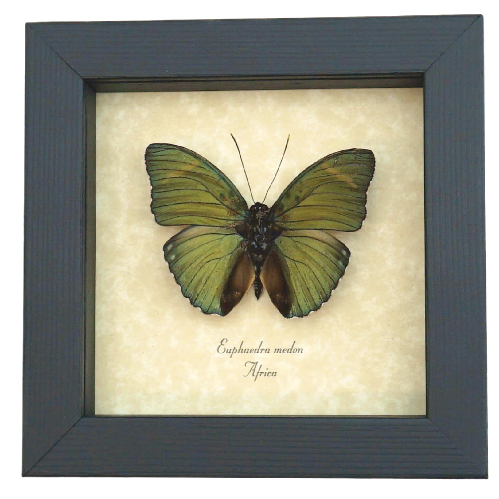 Real Framed African Butterfly Euphaedra medon Golden Green Taxidermy Display