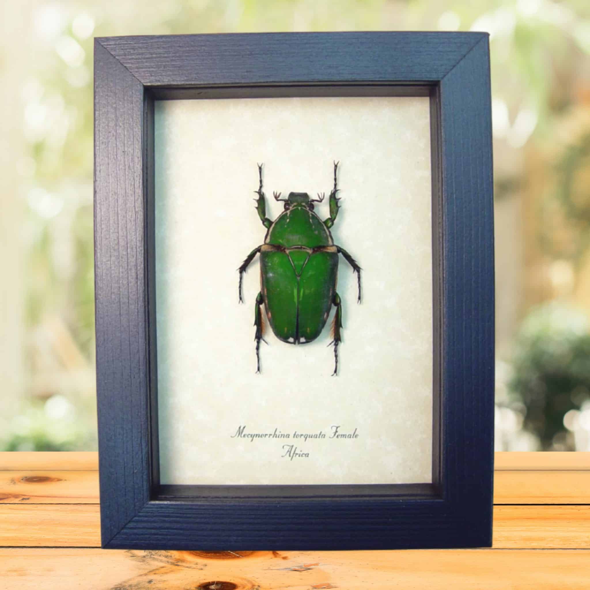 Real Green African Flower Beetle Mecynorrhina torquata Female Framed Taxidermy Display