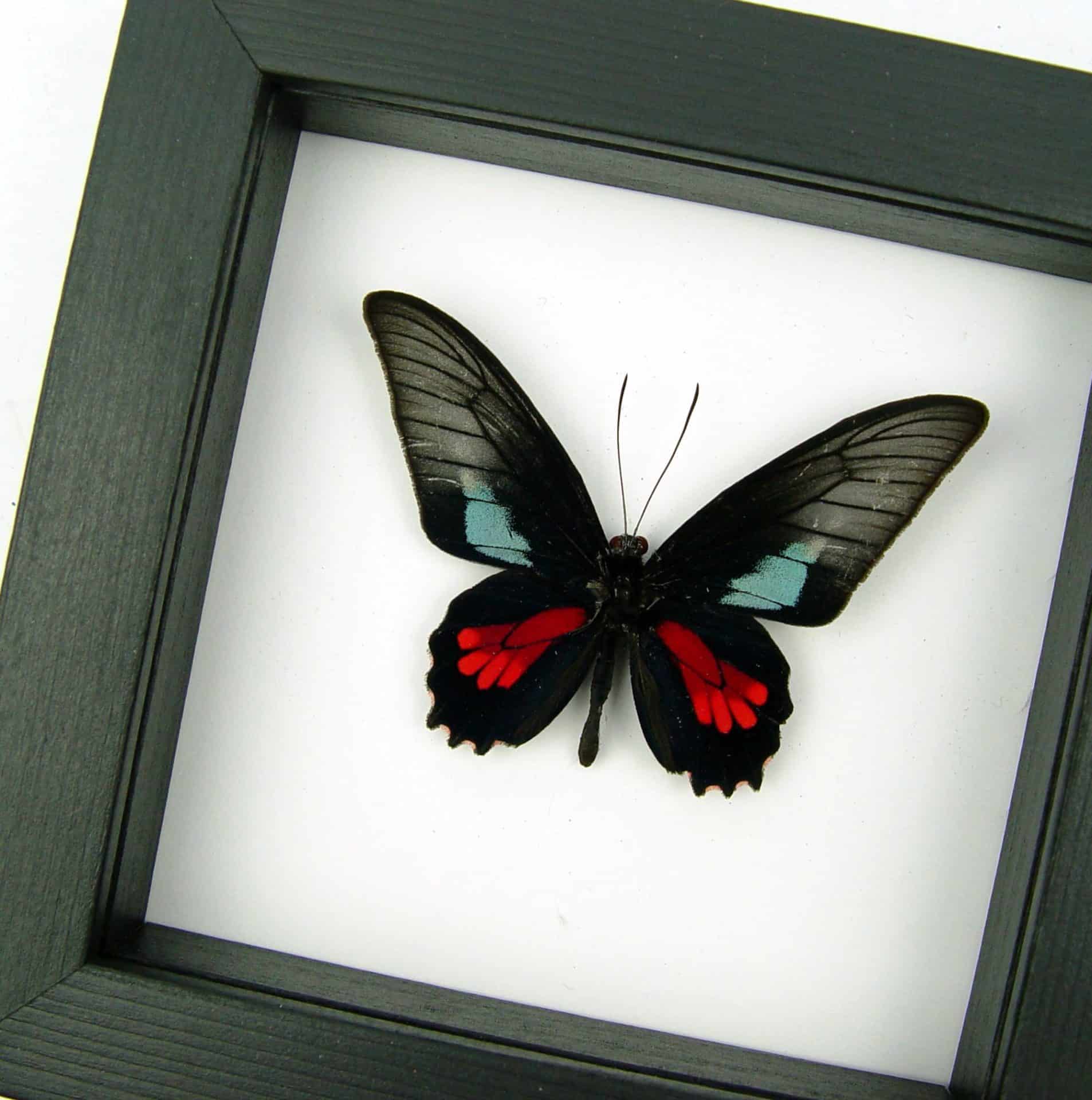 Real Framed Butterfly Parides neophilus olivencius Classic Black Display