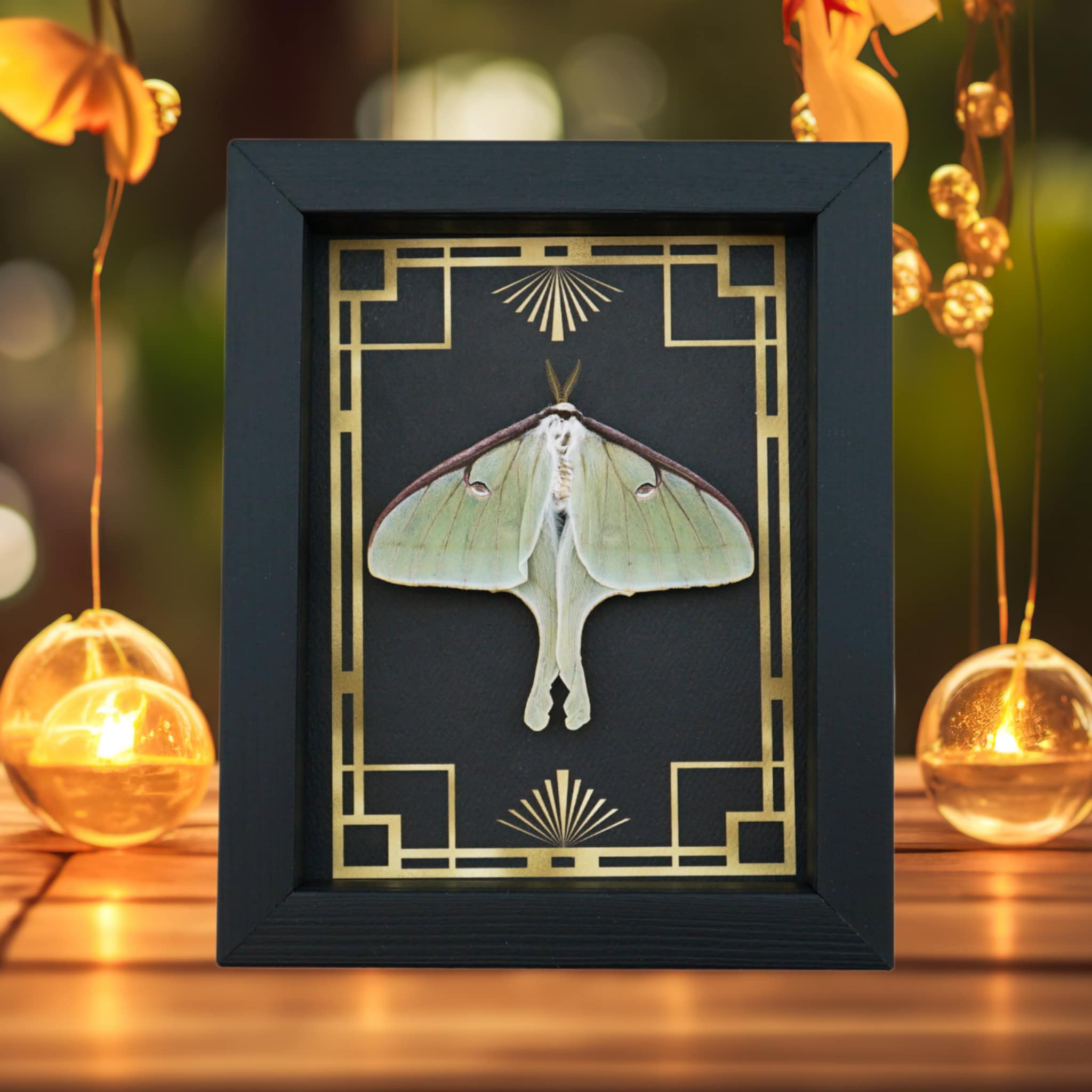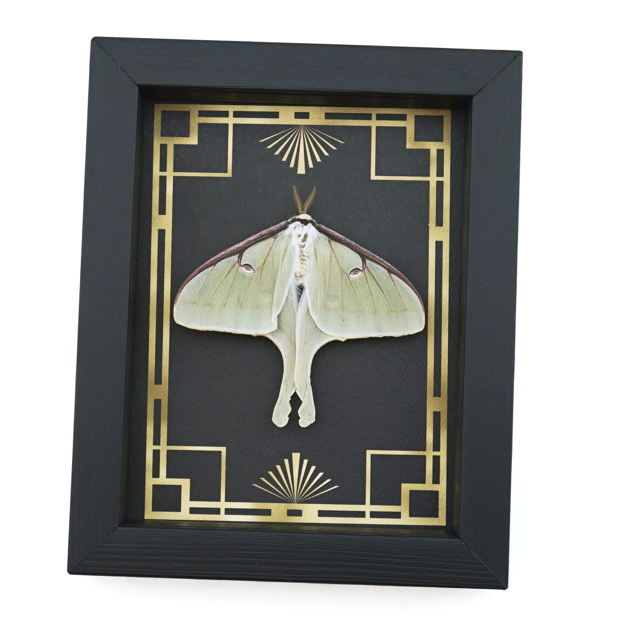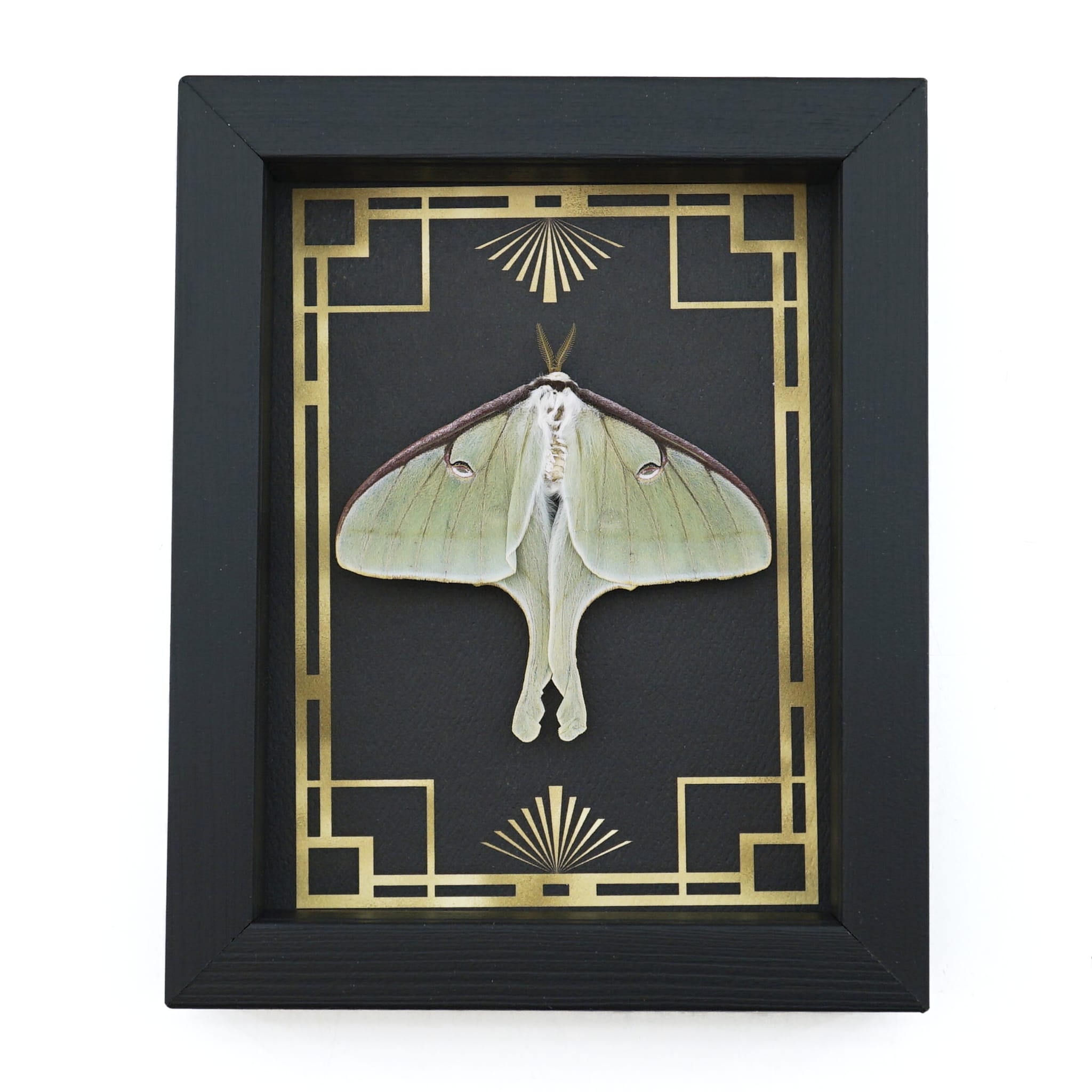 Real Framed Luna Moth Art Deco Border Actias luna Resting Taxidermy Display