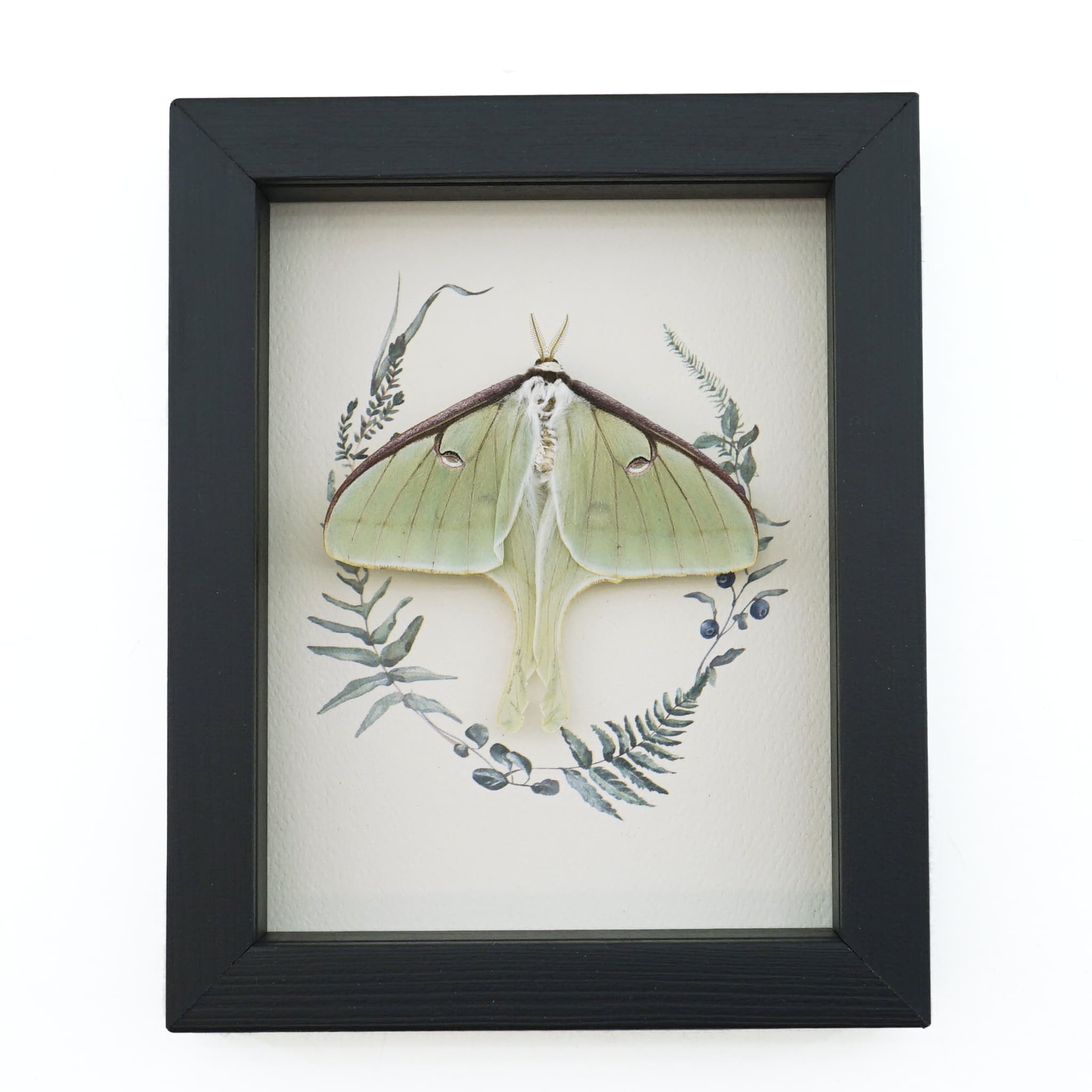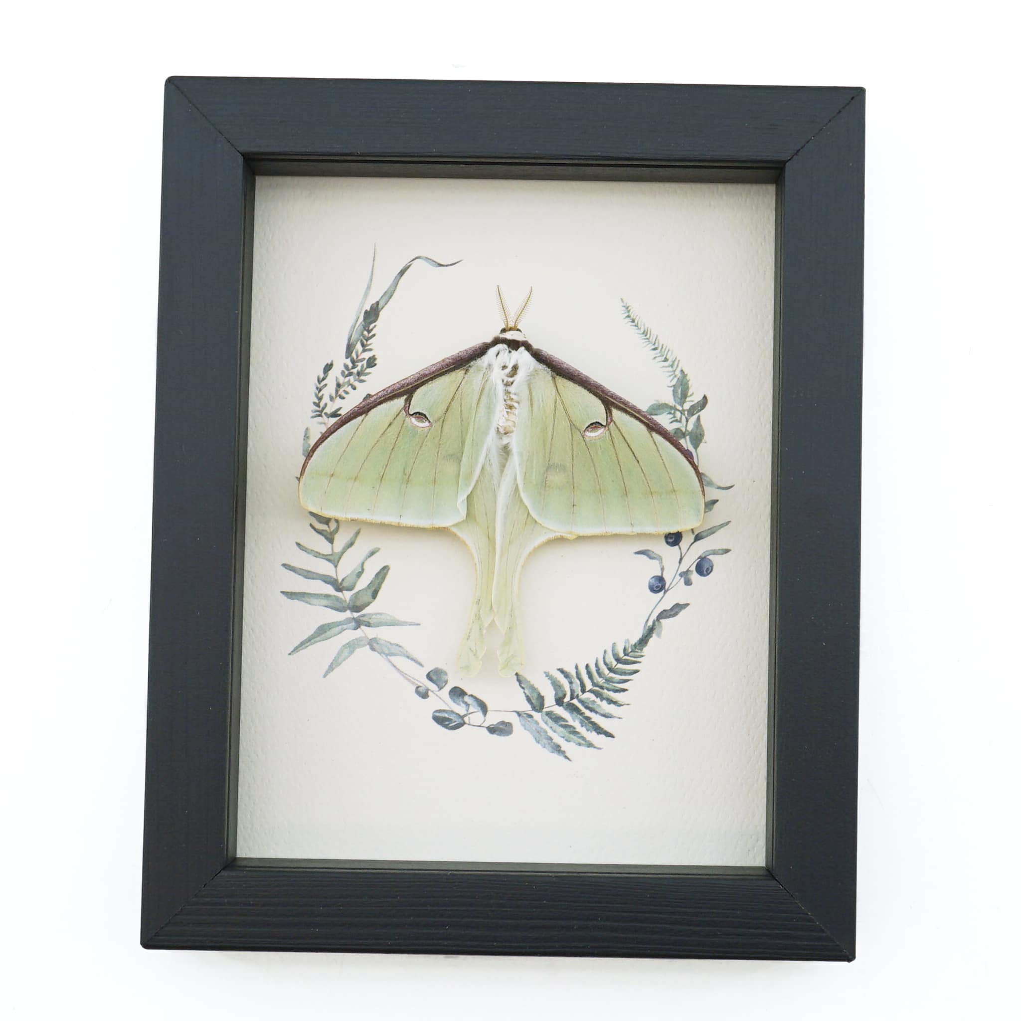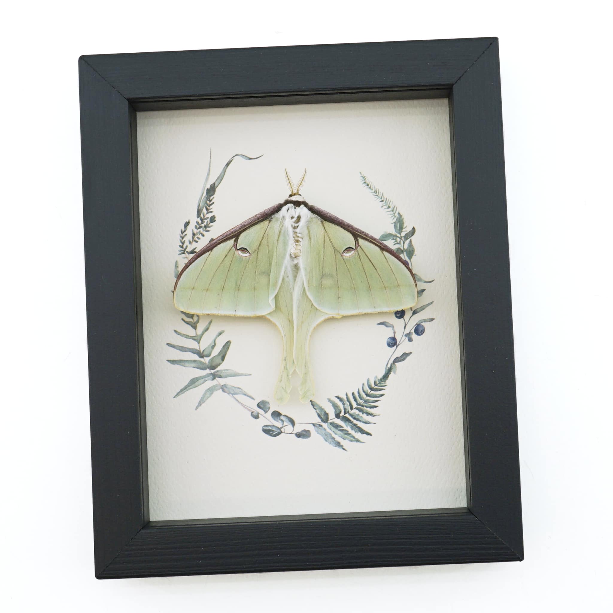 Real Framed Luna Moth Ferns Actias luna Resting Taxidermy Display
