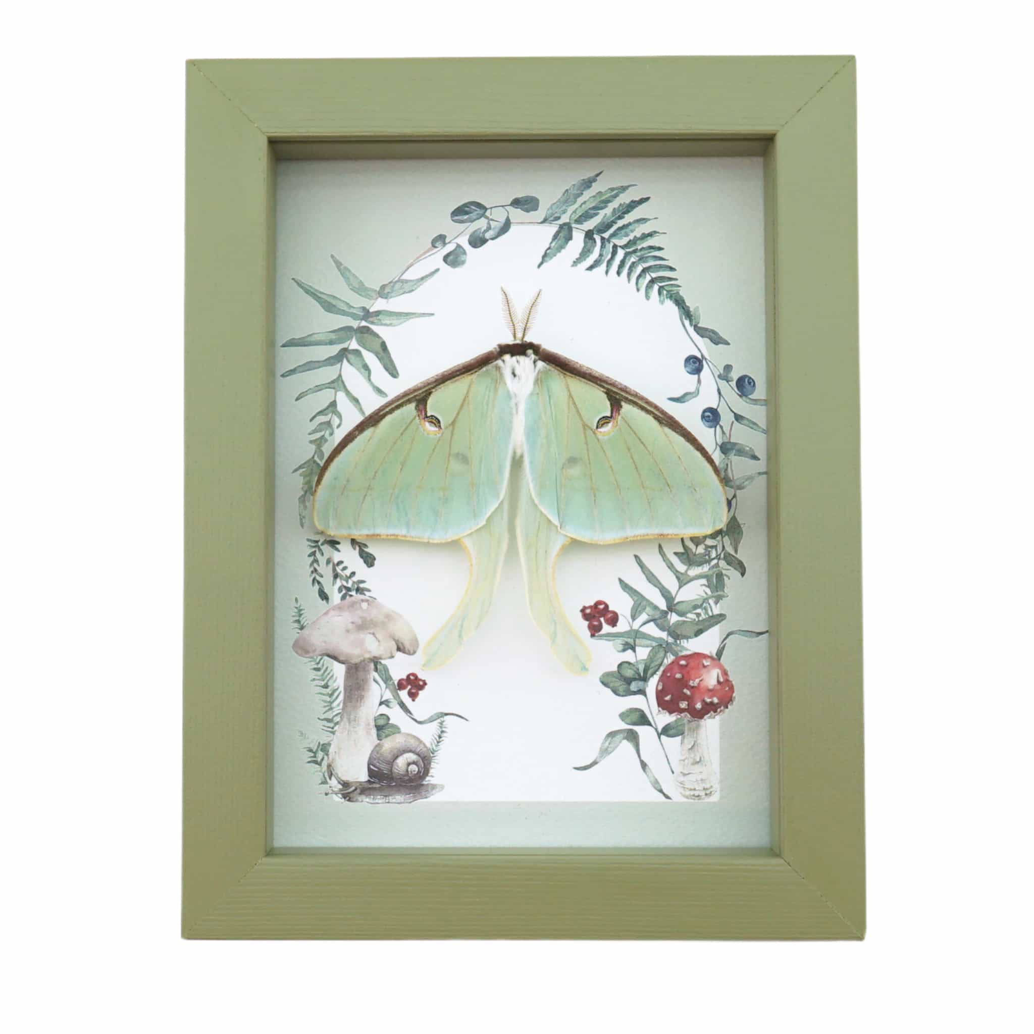 Real Framed Luna Moth Sage Green Ferns Actias luna Resting Taxidermy Display