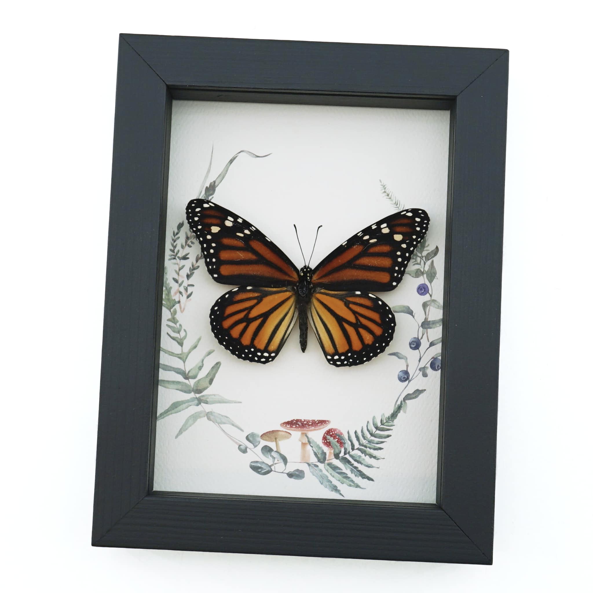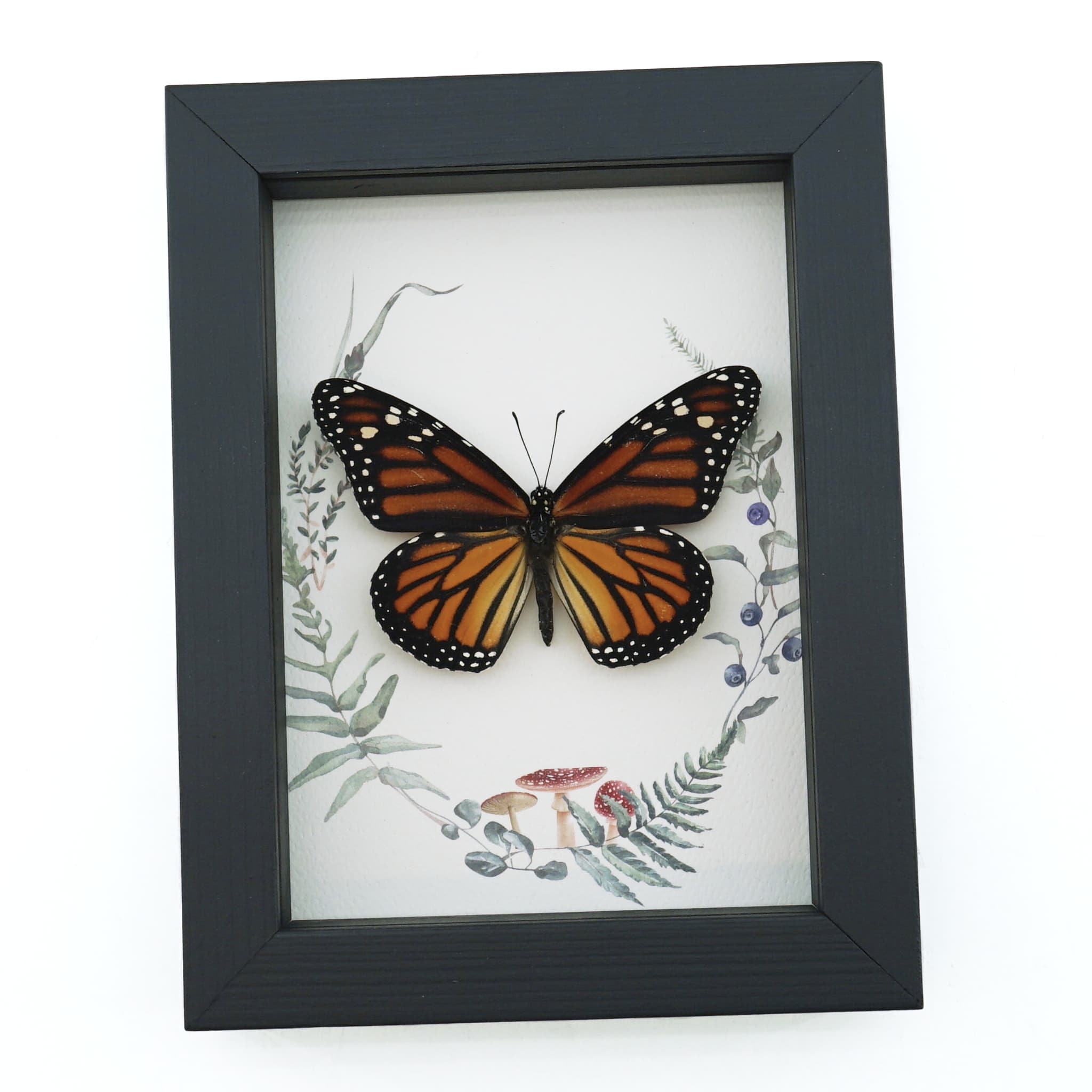 Real Framed Monarch Butterfly Ferns Mushrooms Danaus plexippus Female Taxidermy Display