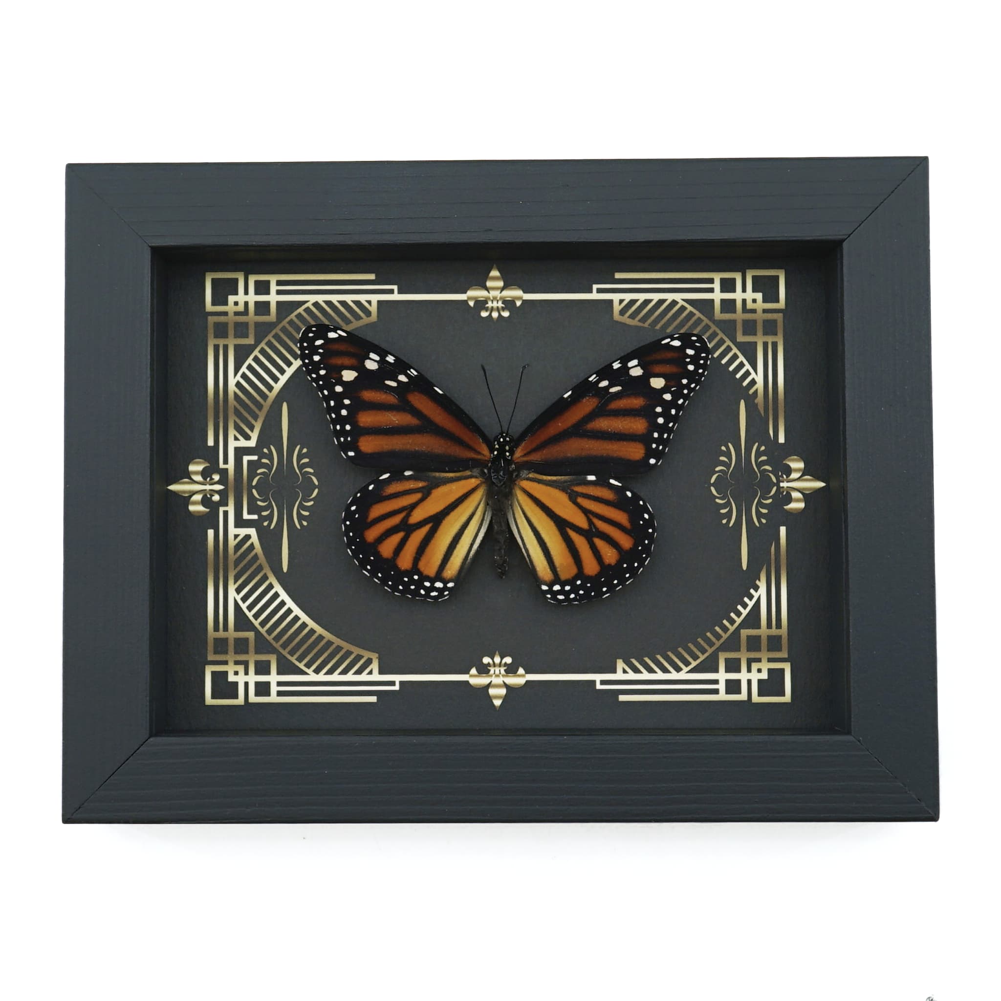 Real Framed Monarch Butterfly Gothic Scrolls Danaus plexippus Female Taxidermy Display