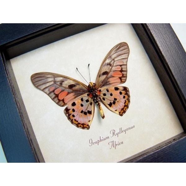 Real Framed Red African Butterfly Graphium rydleyanus Verso Taxidermy Display