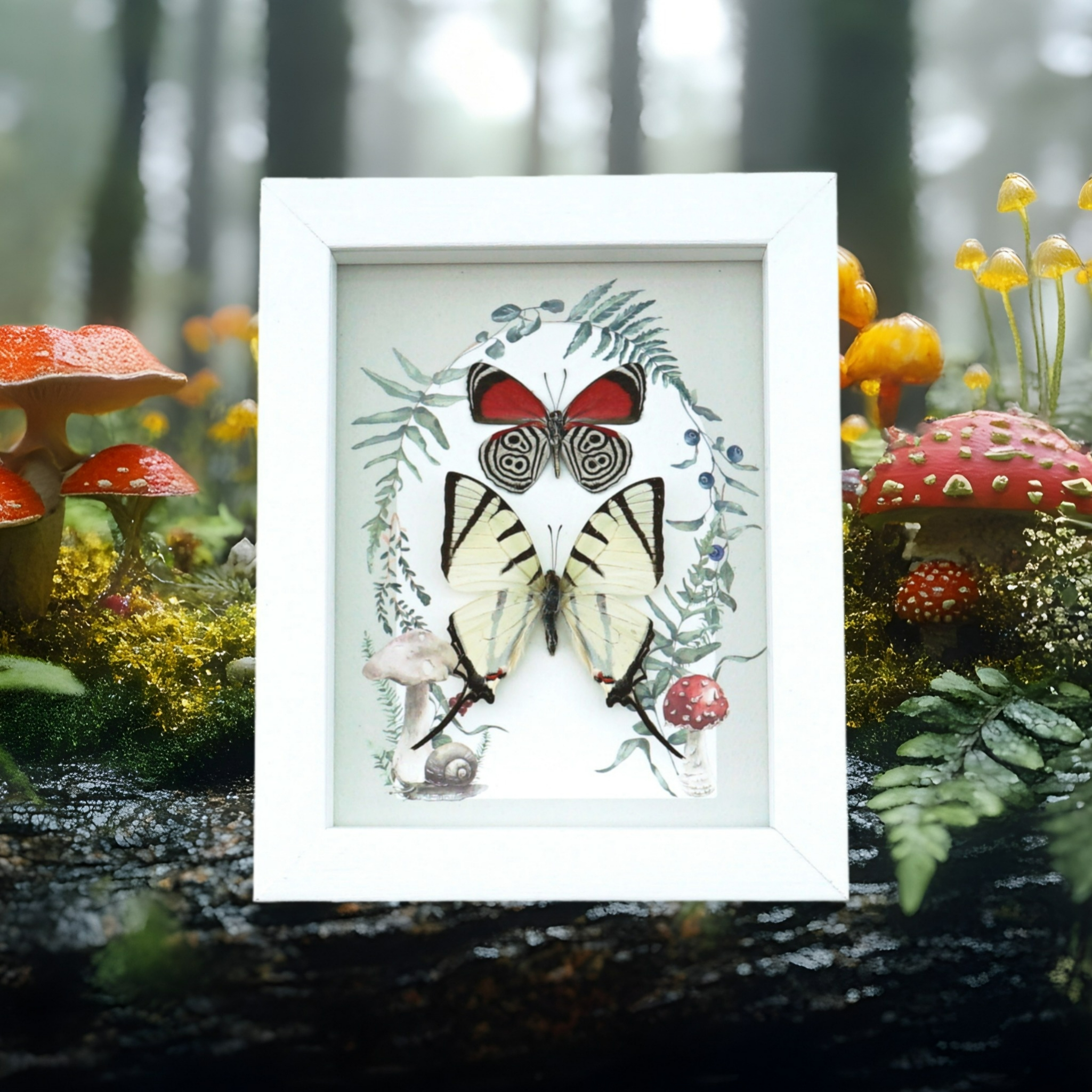 Real Framed Swallowtail Butterfly Collection Forest Mushrooms Taxidermy Display