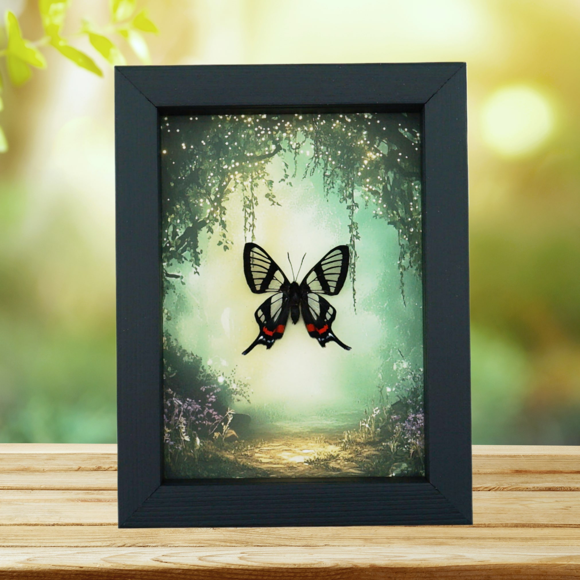 Real Glasswing Swallowtail Butterfly Fairy Forest Framed Taxidermy Display