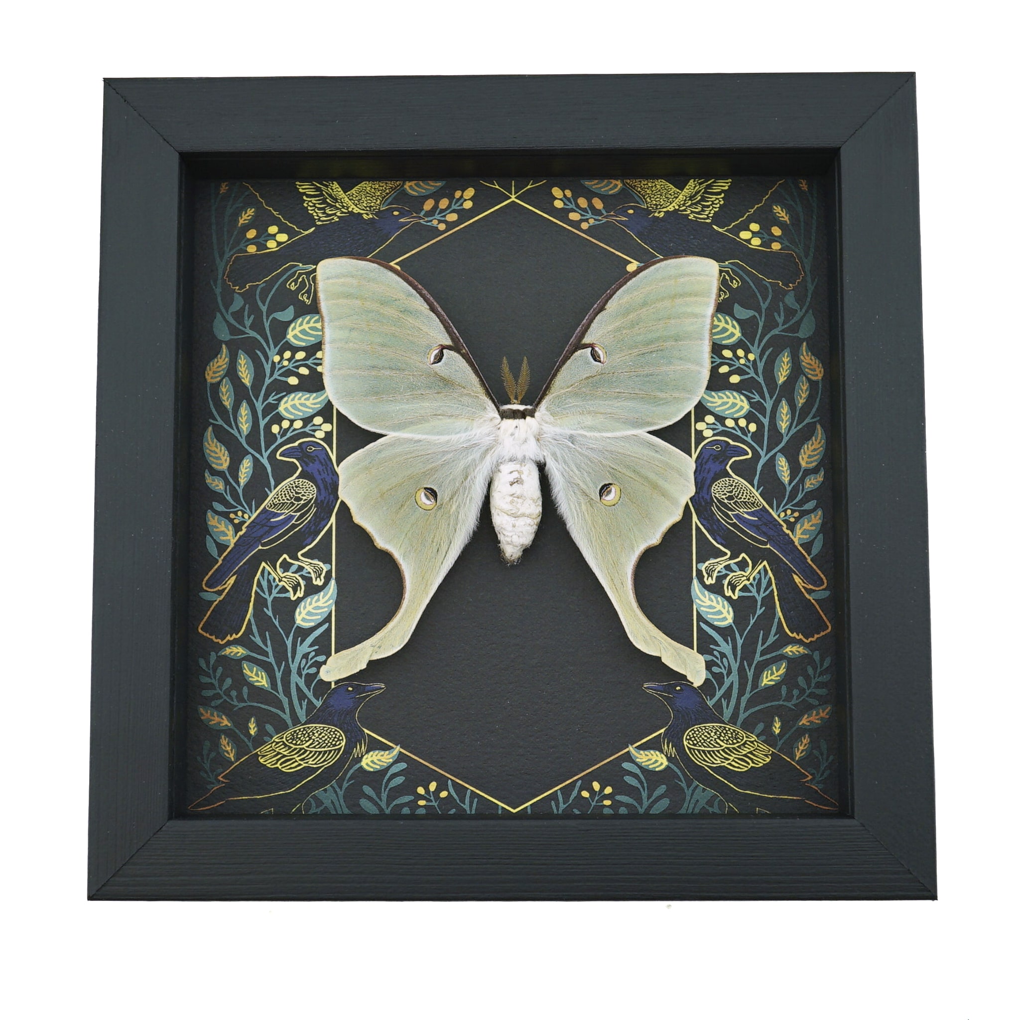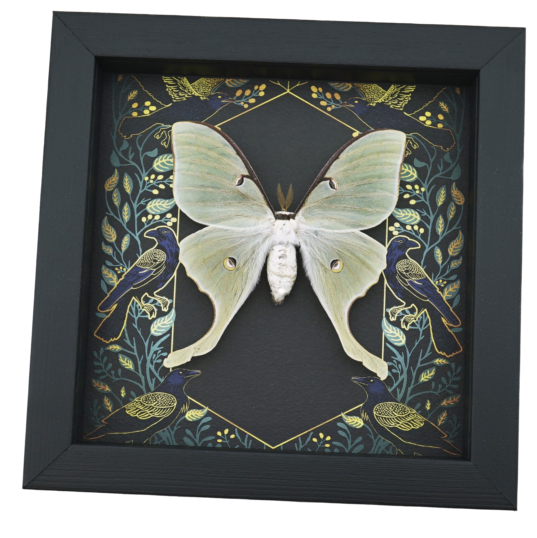 Real Luna Moth Framed Gothic Ravens Actias luna Taxidermy Display
