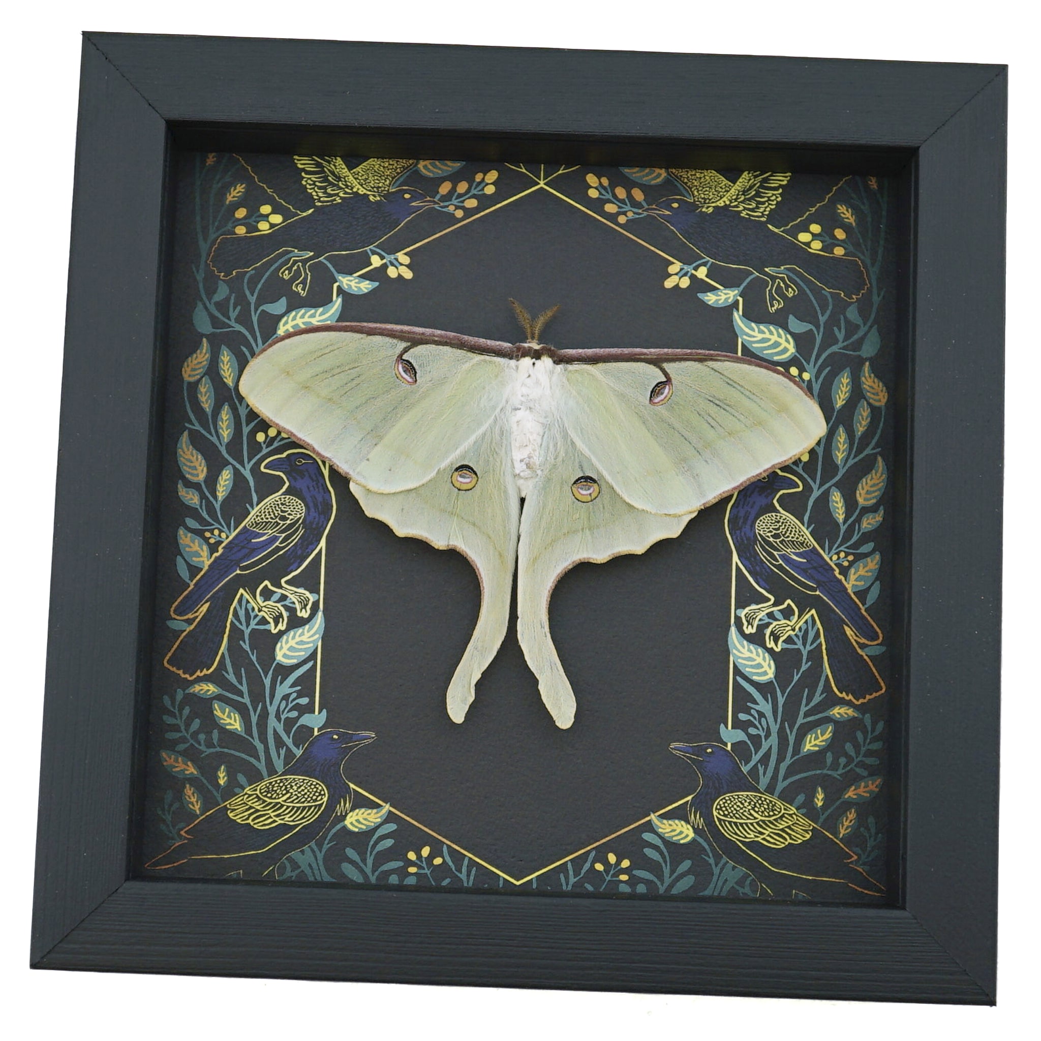 Real Luna Moth Framed Gothic Ravens Actias luna Resting Taxidermy Display