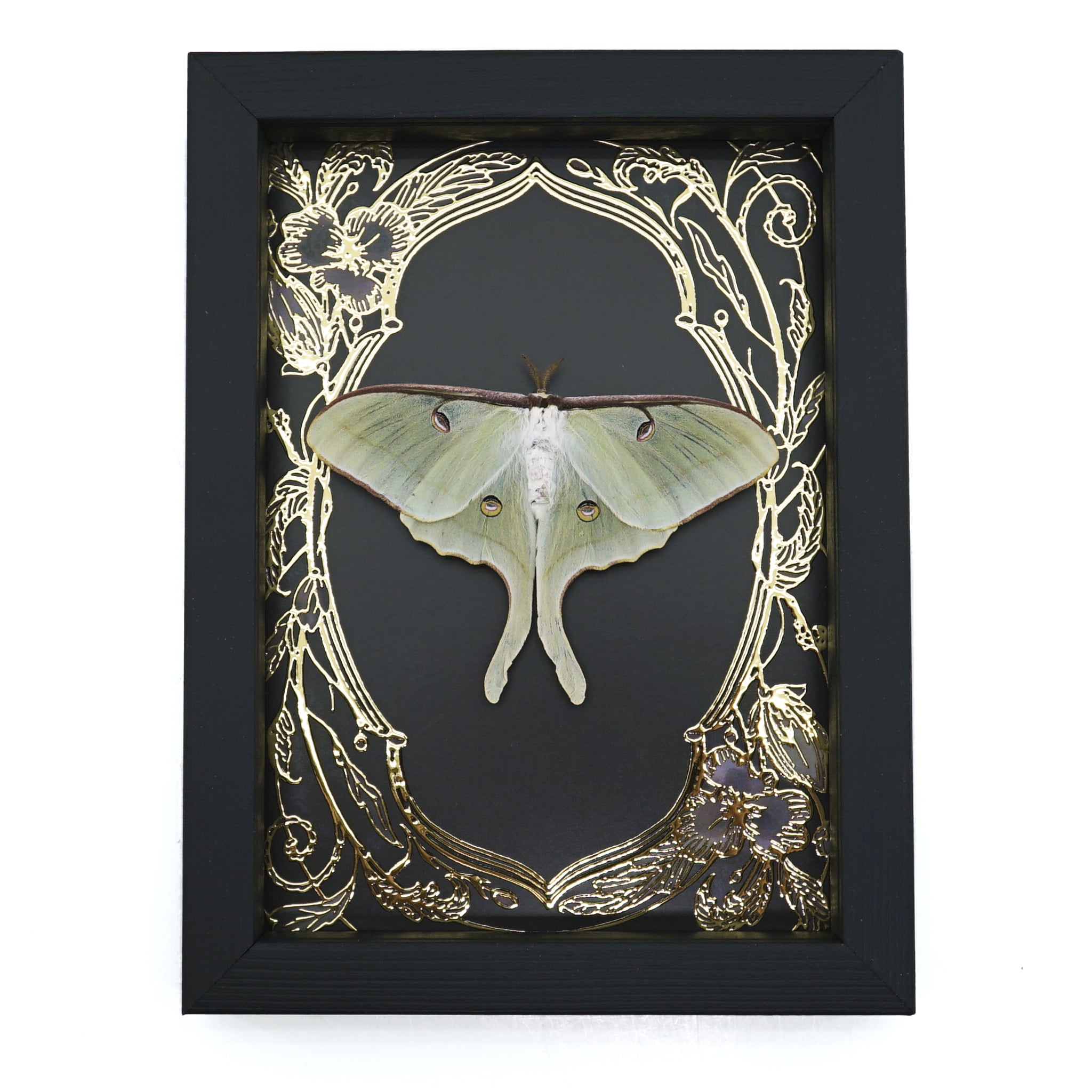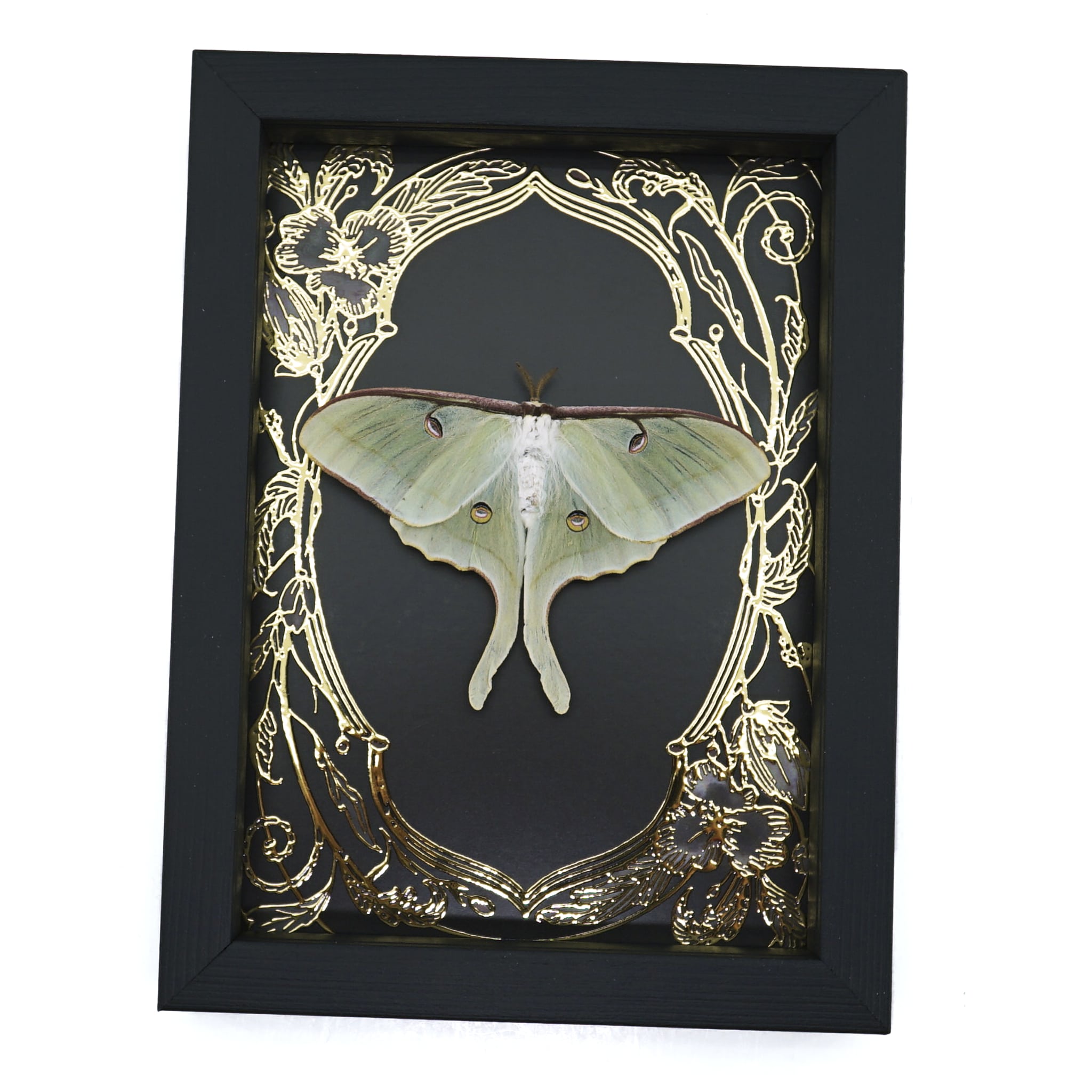 Real Luna Moth Framed Taxidermy Gold Foil Art Nouveau Actias luna Resting Display