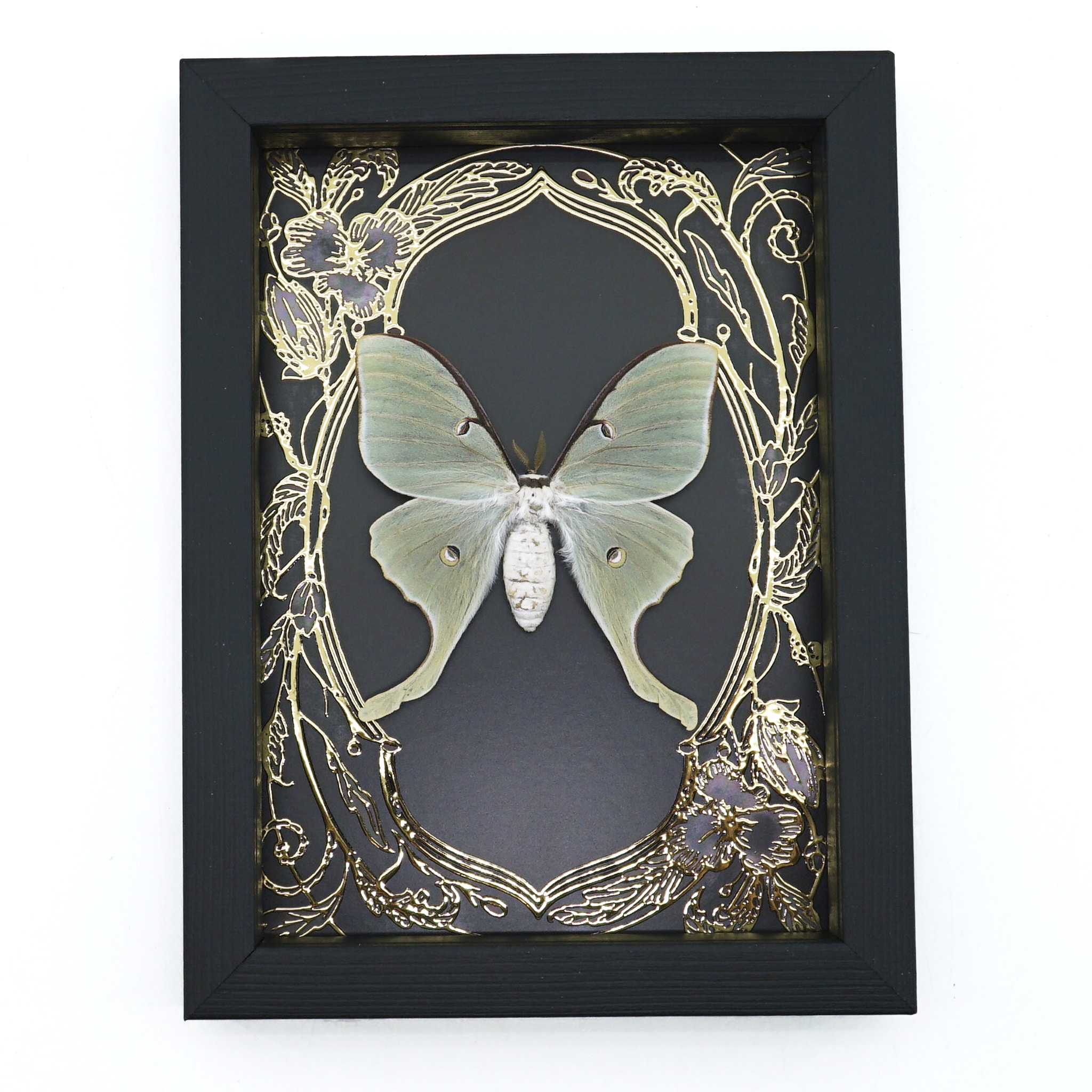 Real Luna Moth Framed Taxidermy Gold Foil Art Nouveau Actias luna