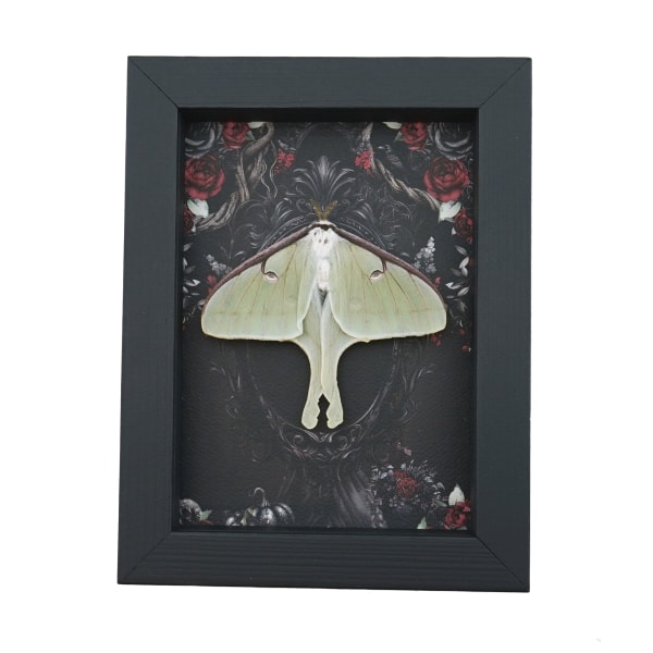 Real Luna Moth Gothic Black Roses Actias luna Resting Framed Taxidermy Display