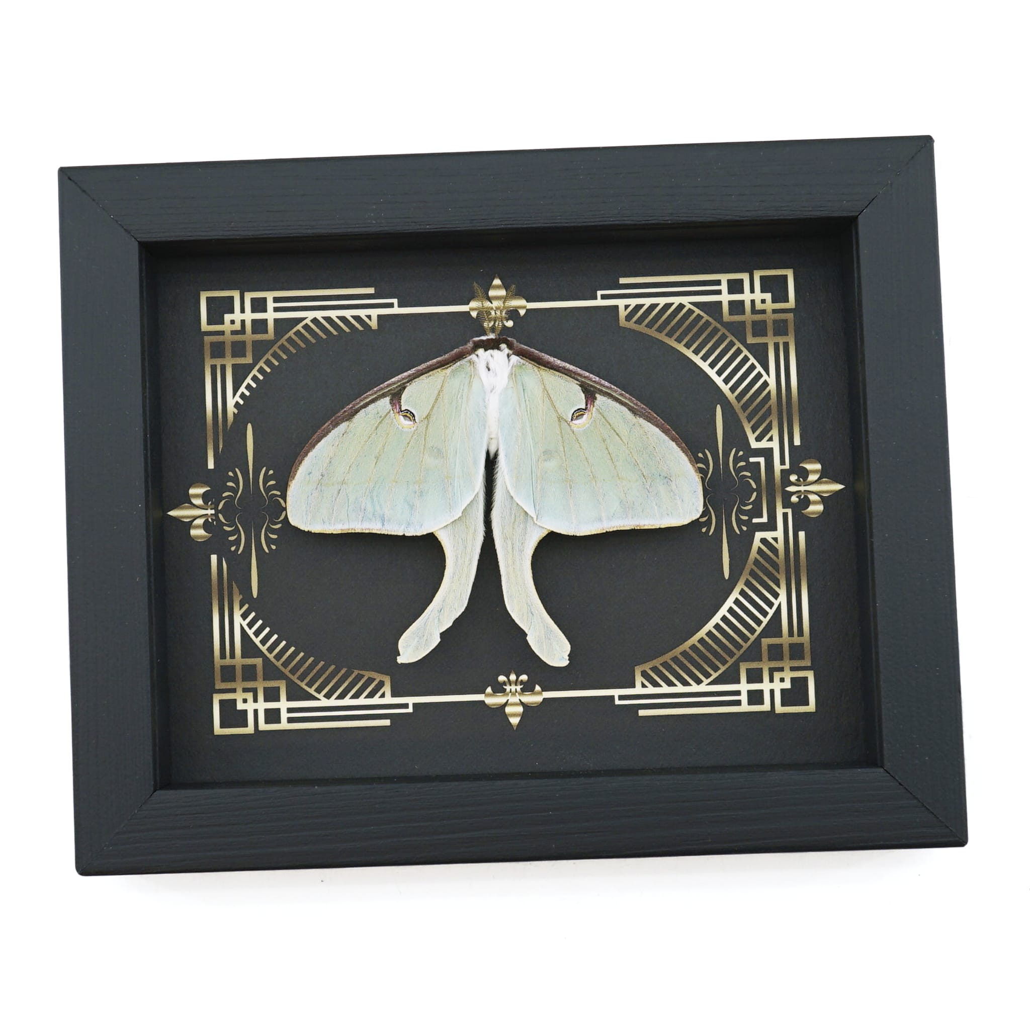 Real Luna Moth Gothic Scrolls Actias luna Resting Framed Taxidermy Display