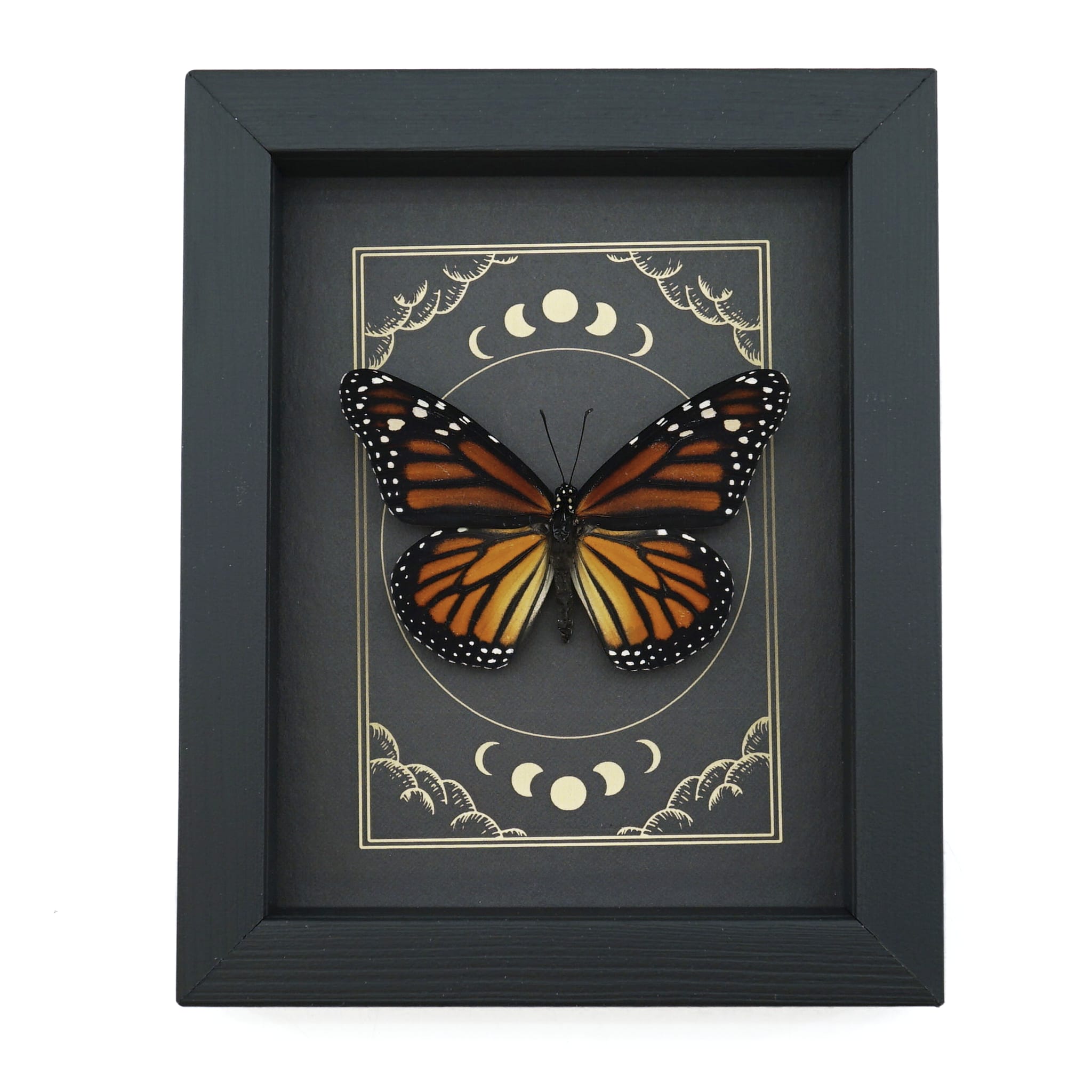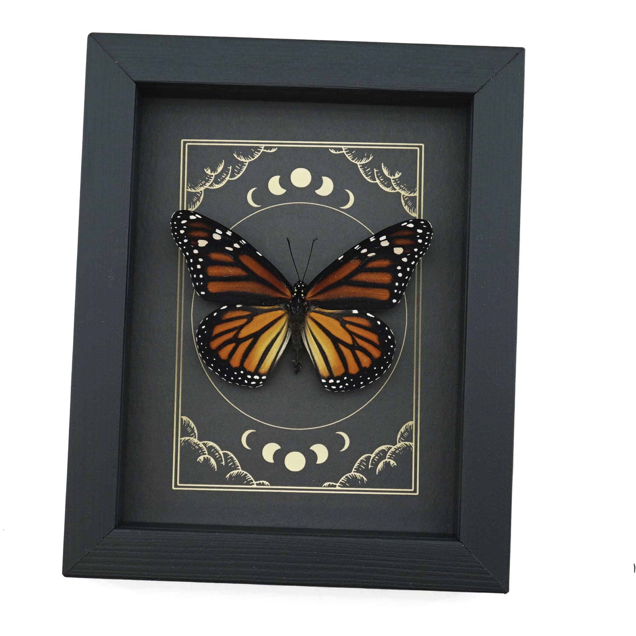 Real Monarch Butterfly Gothic Moon Phases Danaus plexippus Female Framed Taxidermy Display