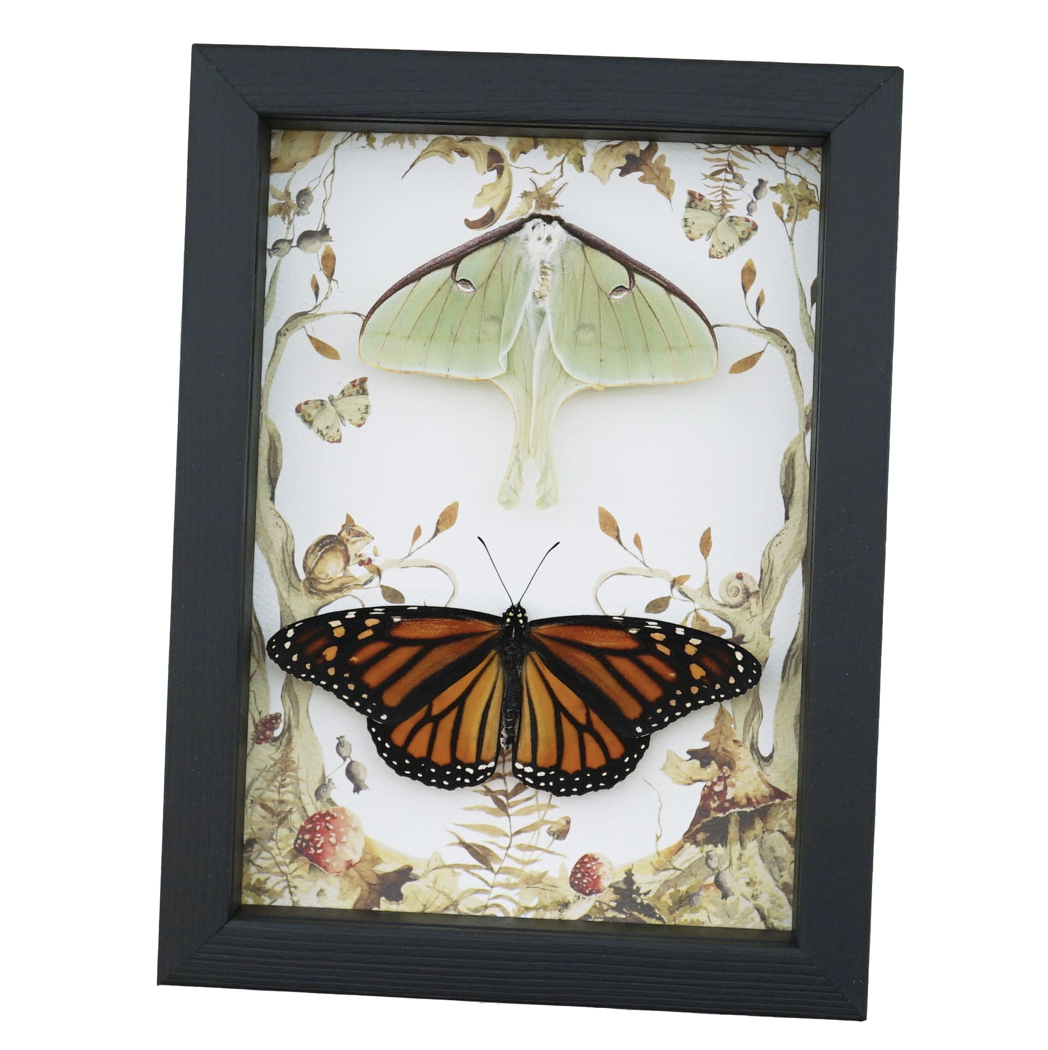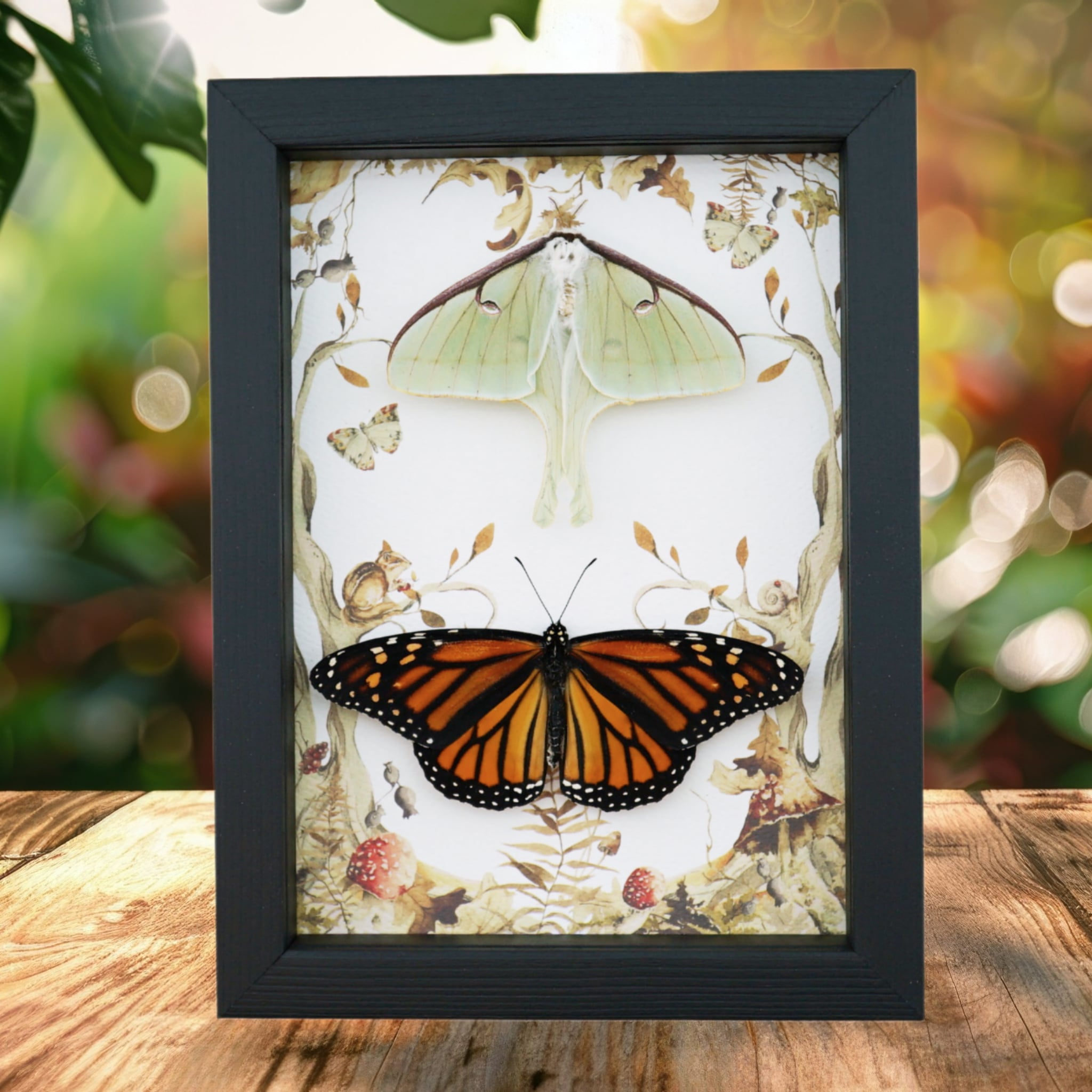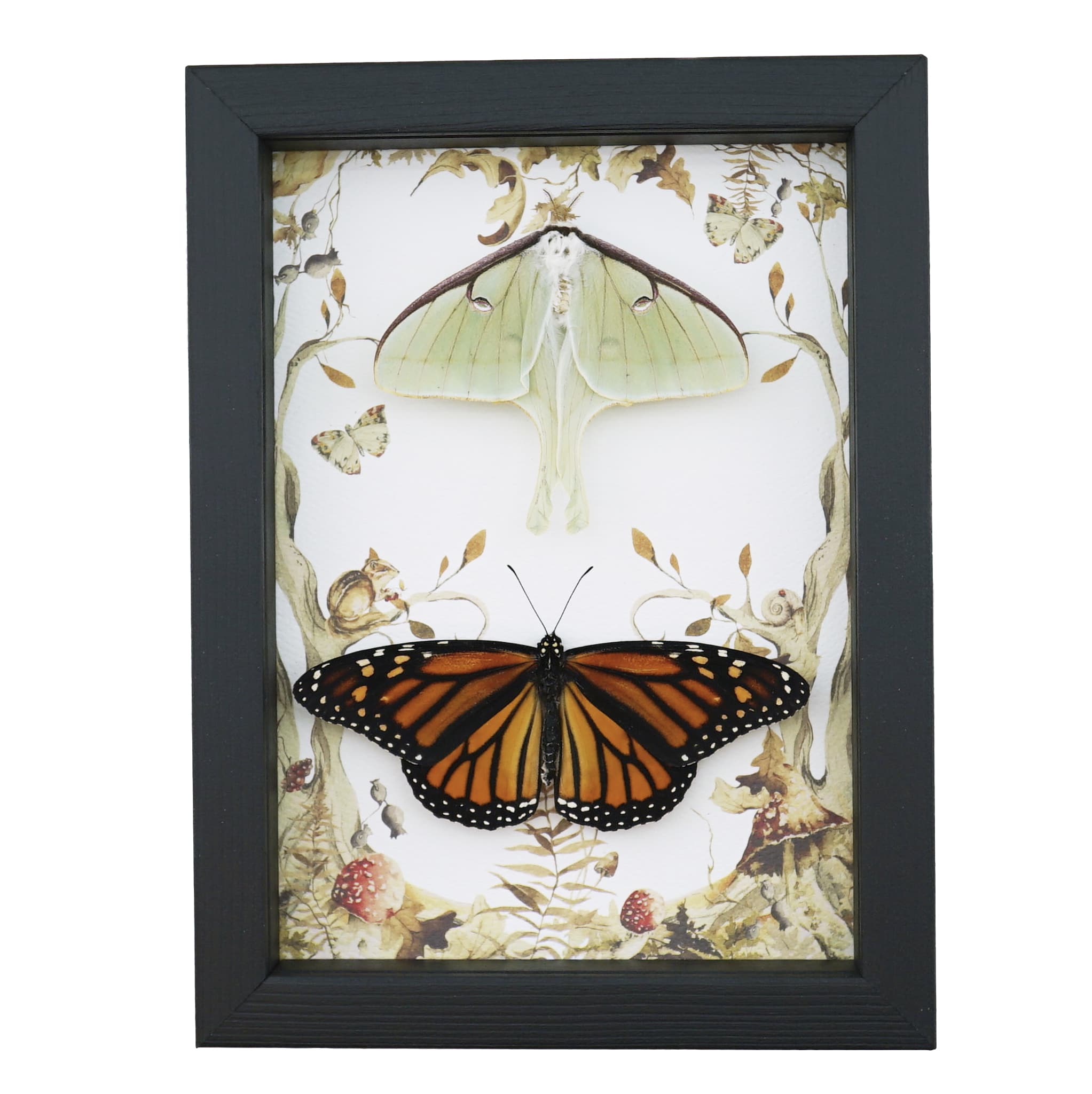 Real Monarch Butterfly Luna Moth Collection Framed Taxidermy Display
