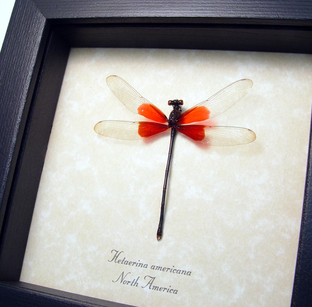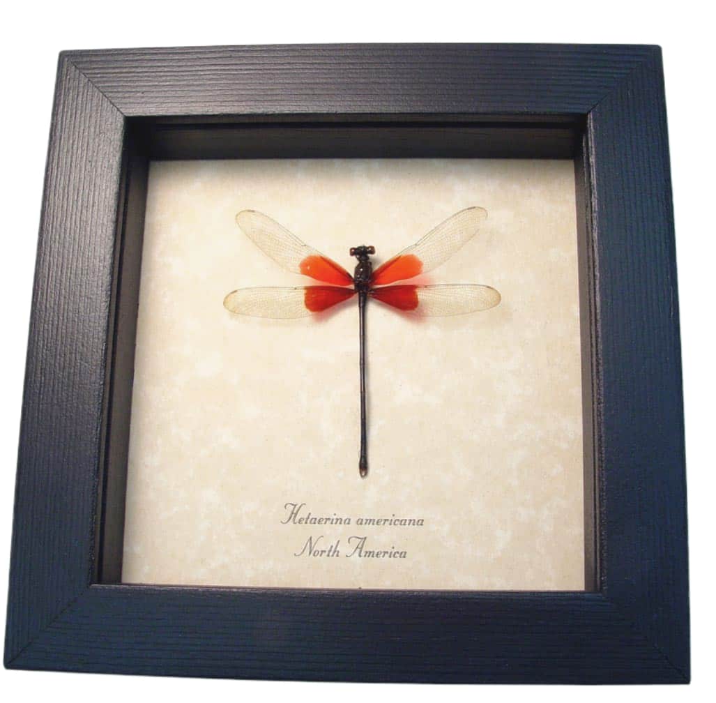 Red Damselfly Hetaerina americana Real Framed Rubyspot Insect Taxidermy Display