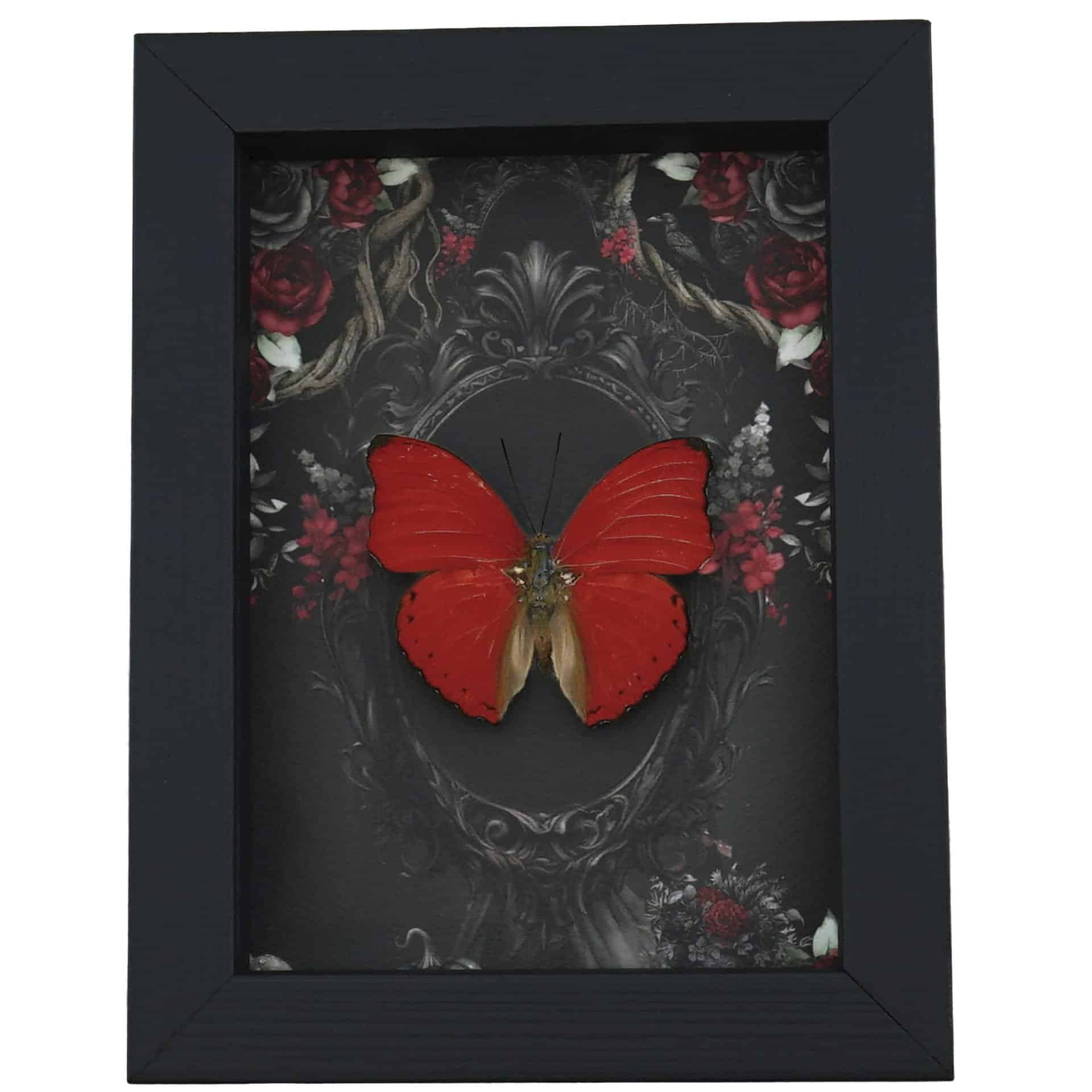 Red Heart Butterfly Gothic Black Roses Cymothoe sangaris Real Framed Taxidermy Display