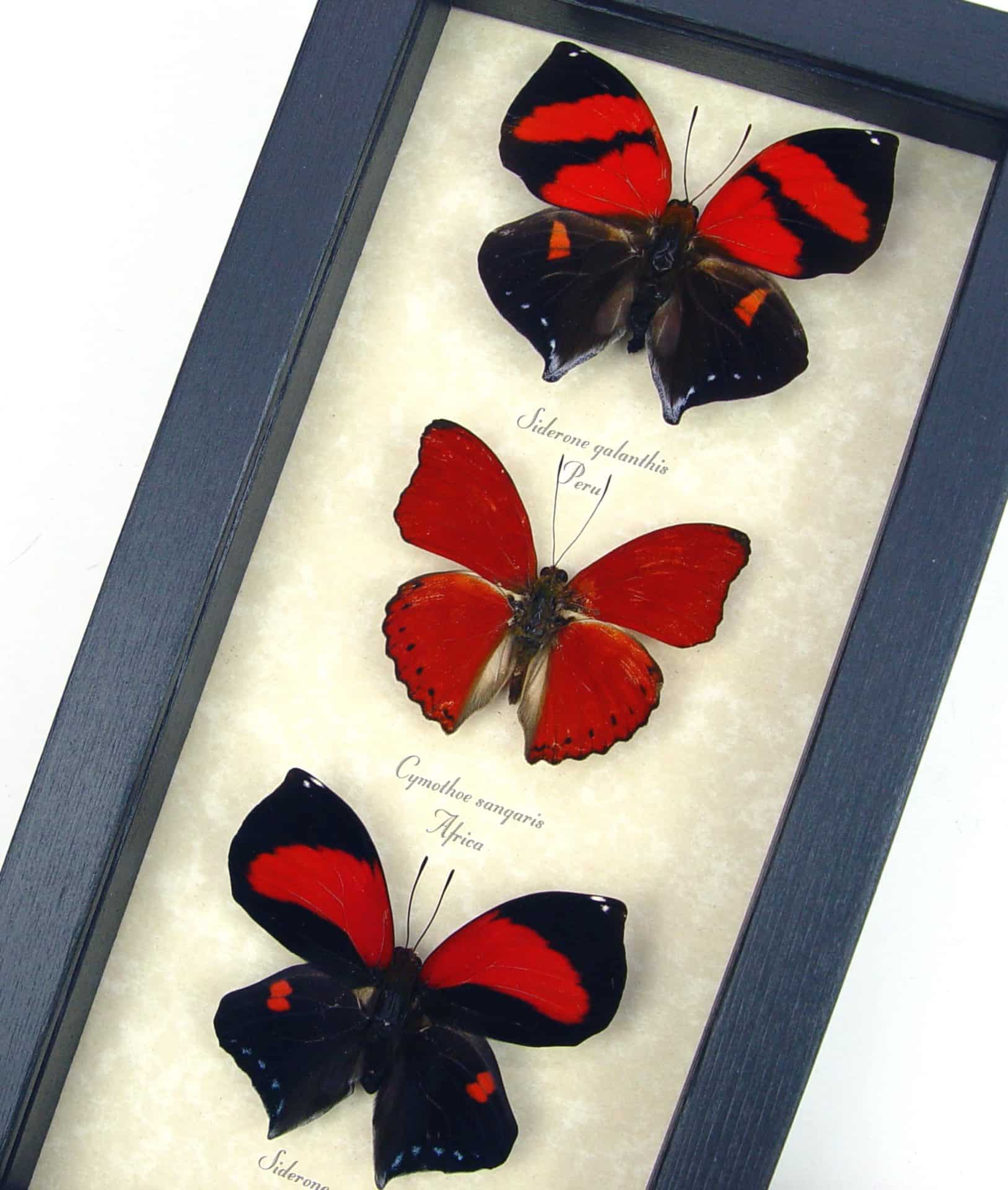 Red Heart Butterfly Collection Real Framed Butterflies Set Taxidermy Display