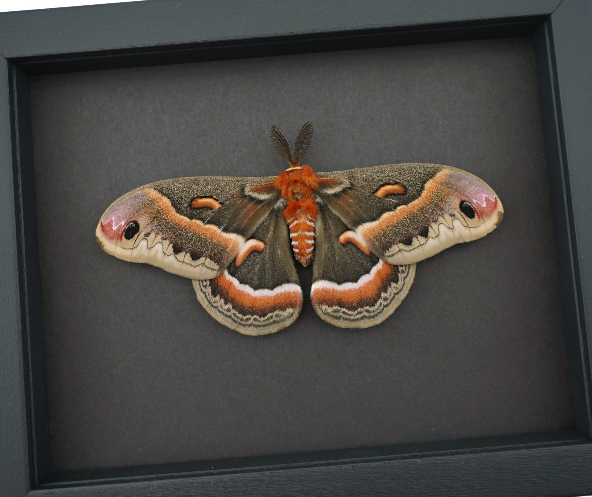 Resting Cecropia Moth Hyalophora cecropia Male Framed Taxidermy Moonlight Display