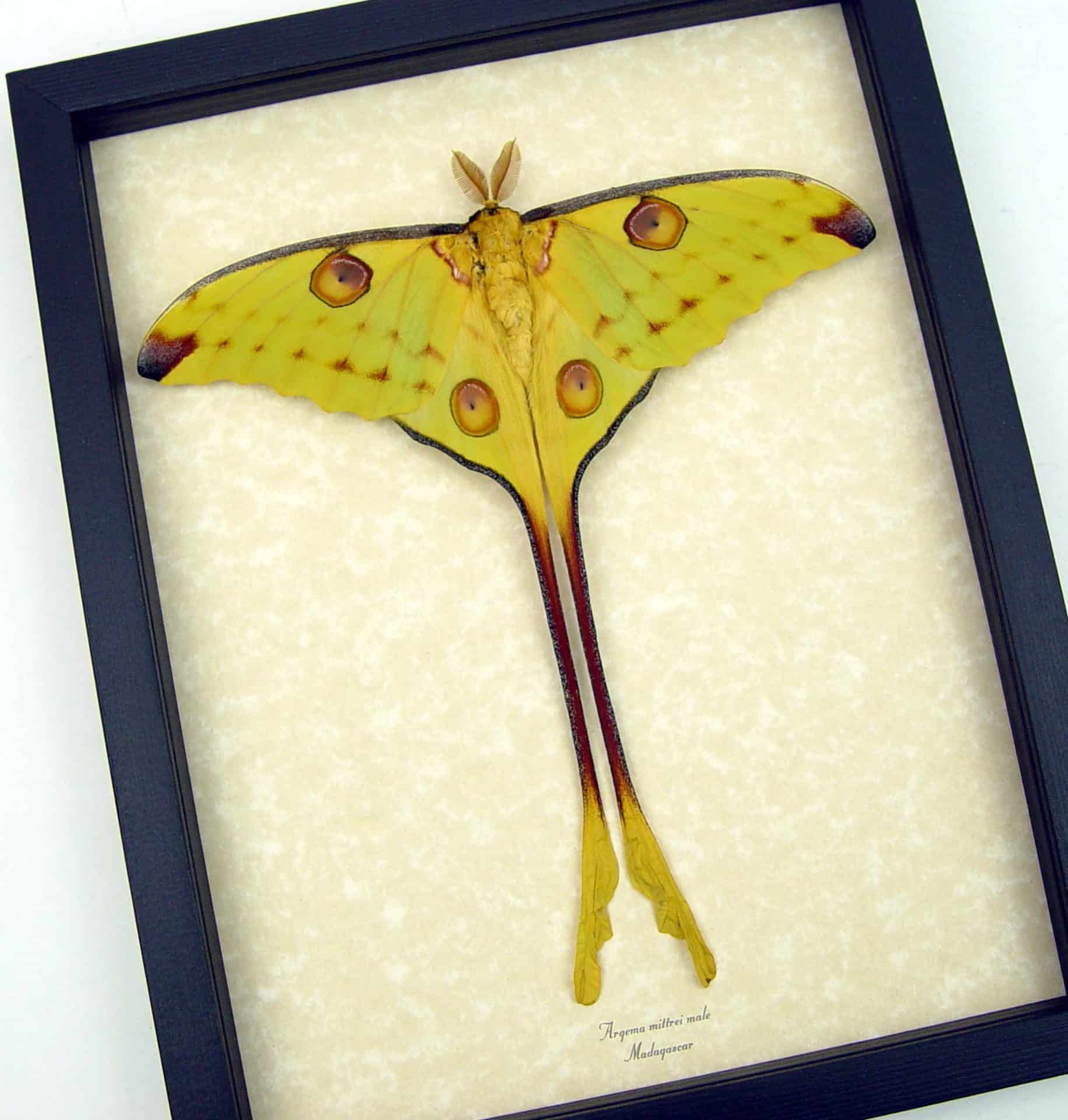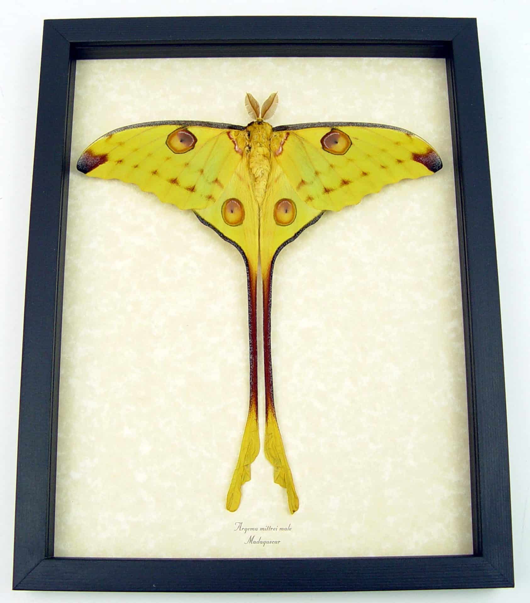 Resting Comet Moth Argema Mittrei Male Framed Moon Moth Taxidermy Display