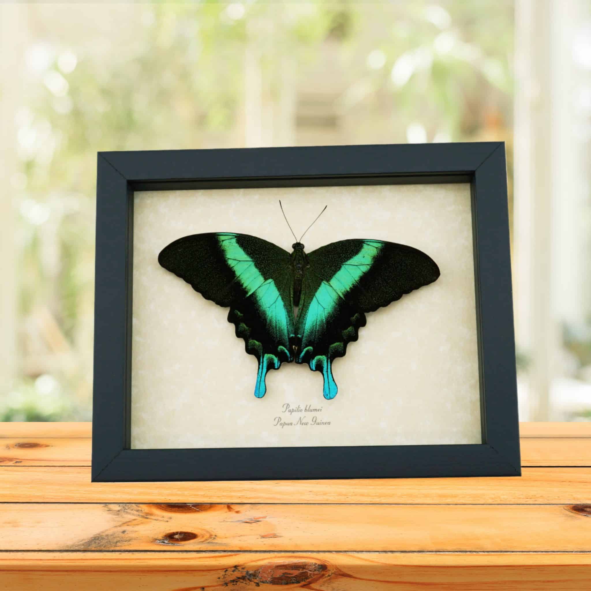 Resting Peacock Swallowtail Butterfly Papilio Blumei Framed Taxidermy Display