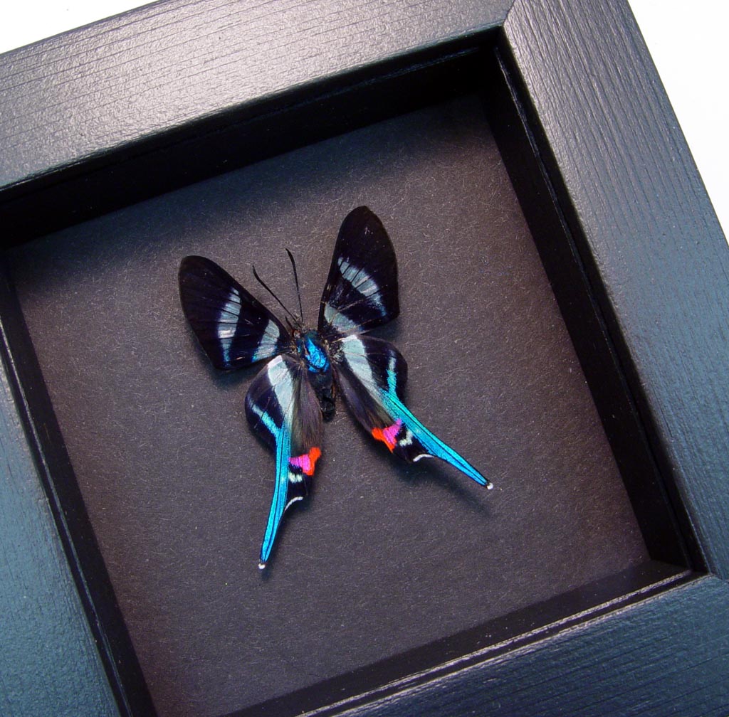 Rhetus arcius Blue Swallowtail Butterfly Framed Moonlight Display